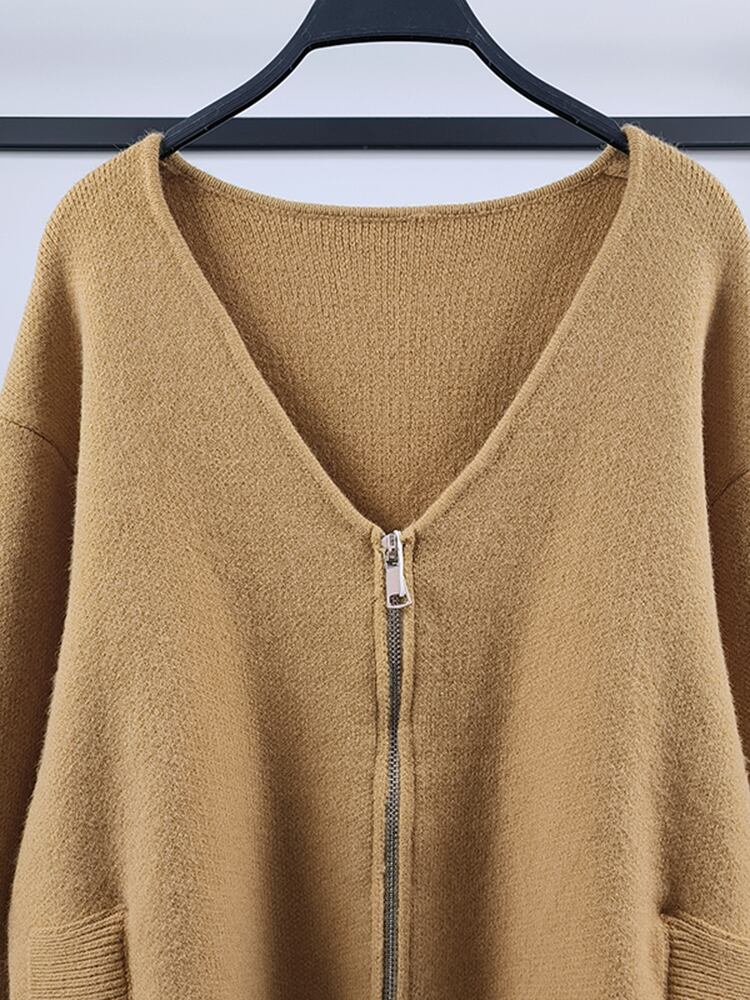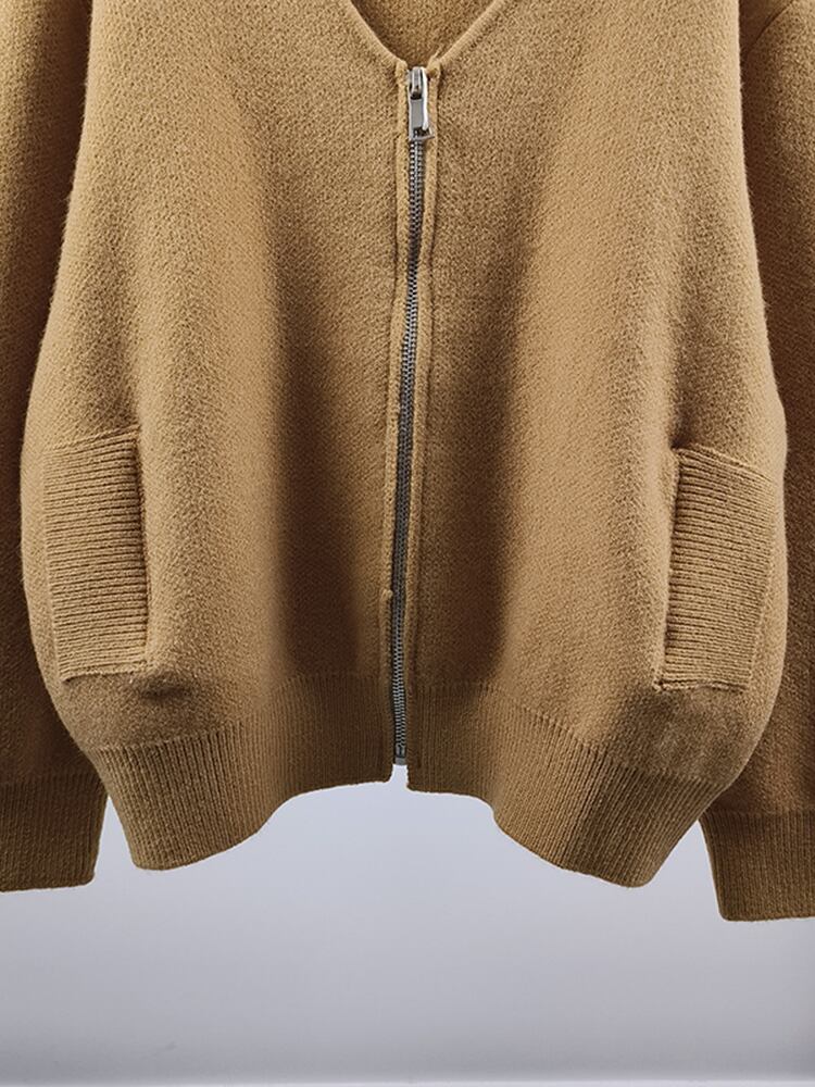 [EWQ] ダブルポケットジッパーカーディガンコート冬長袖厚手ルーズセータージャケット秋 16U4987 ロング オータム 秋物 ウィンター 冬物