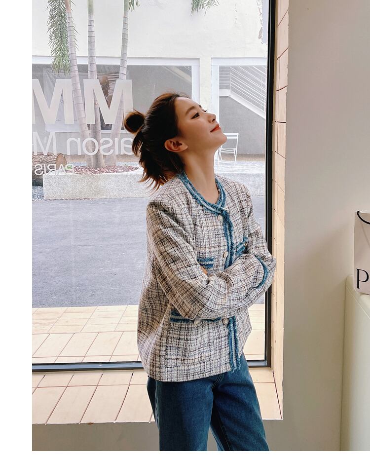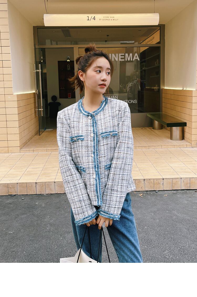 [EWQ] デニムテルツイードジャケットポケットスプライシングシングルブレストルーズジャケット O ネックコート秋冬 16U4920 オータム 秋物 ウィンター 冬物 Oネック