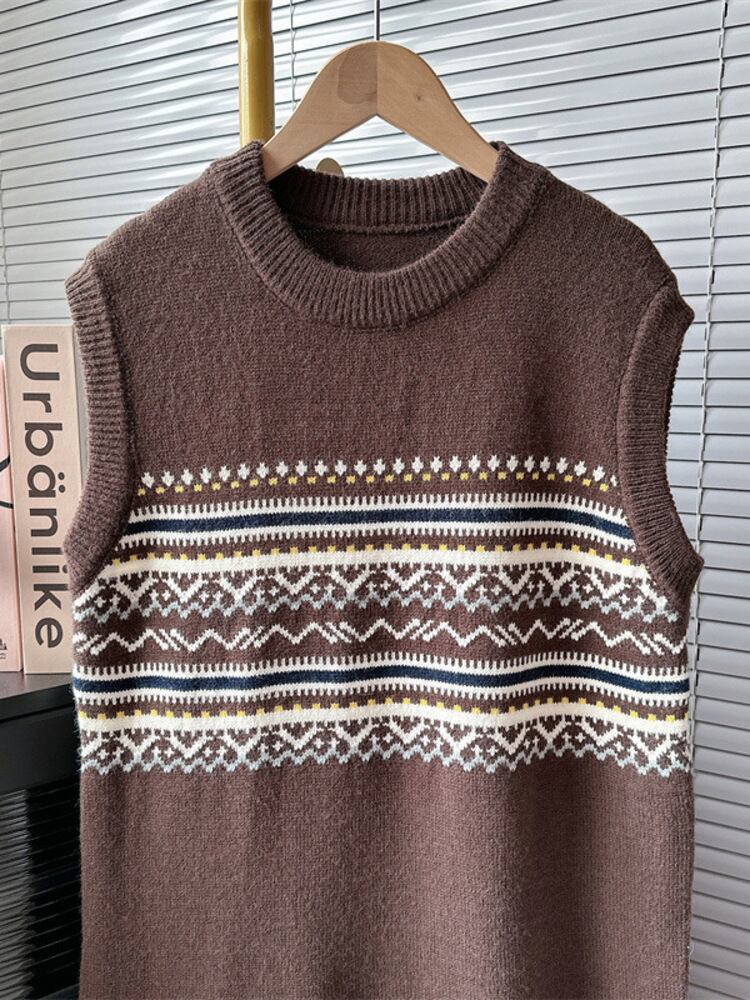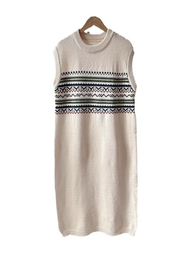 [EWQ] プリントセーターベストドレス O ネック弾性ノースリーブニットドレス秋冬暖かい服 U51051 エラスティック 伸縮 オータム 秋物 ウィンター 冬物 Oネック