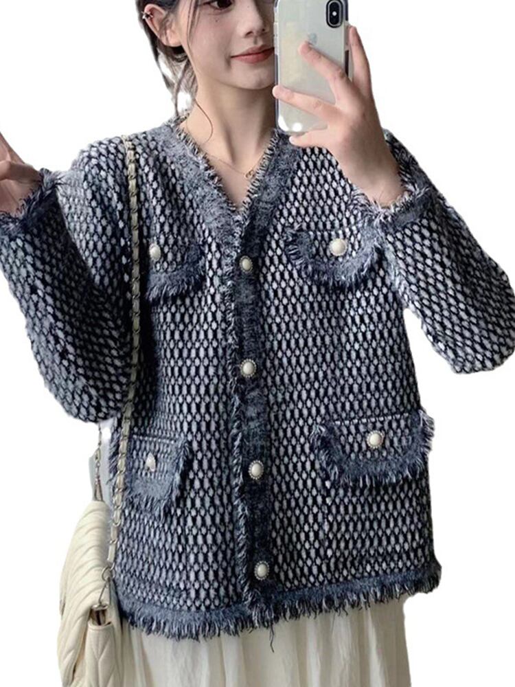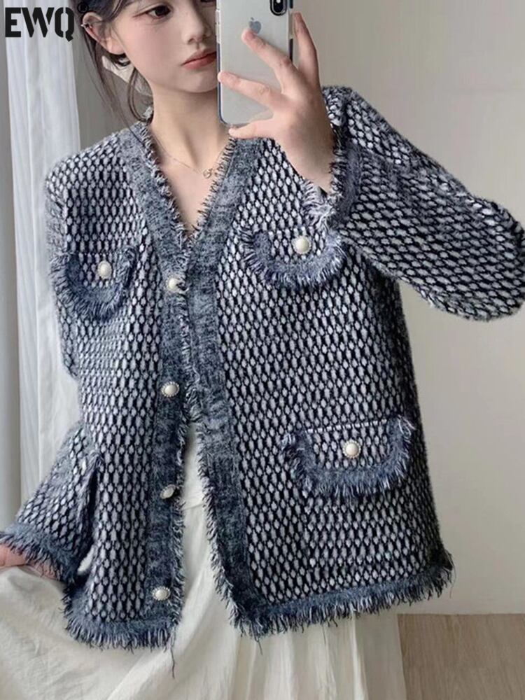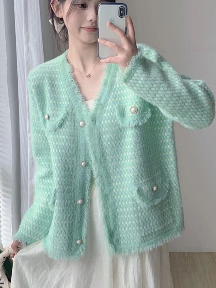[EWQ] 甘いミンクカシミヤカーディガンコートポケットパッチワークテルソフトセータージャケット秋冬 16U4435 大人ガーリー スウィート キュート カジュアル オータム 秋物 ウィンター 冬物