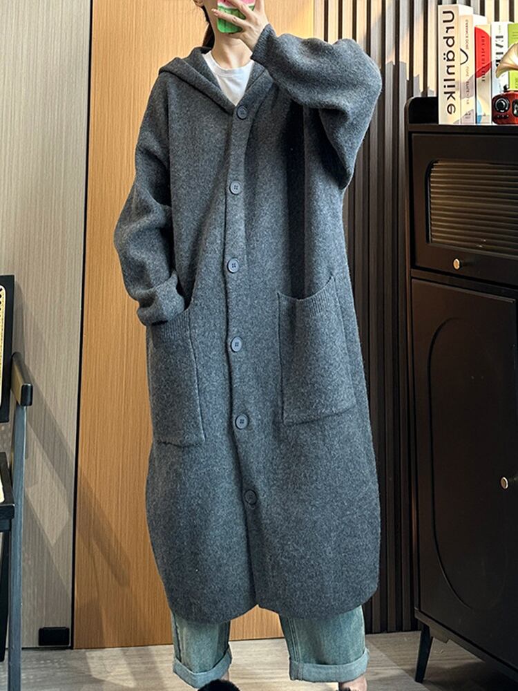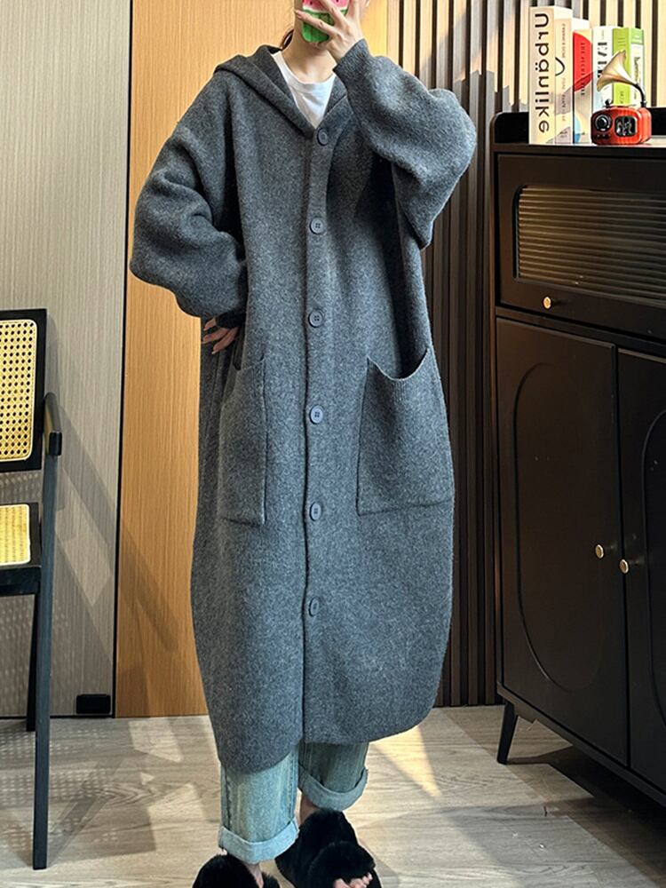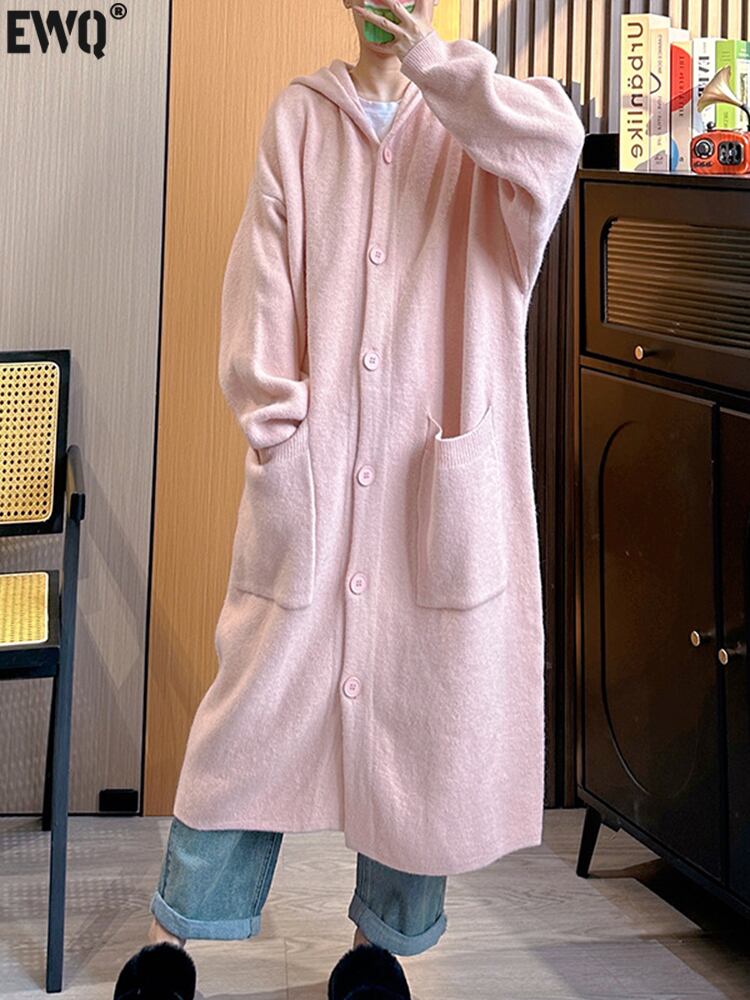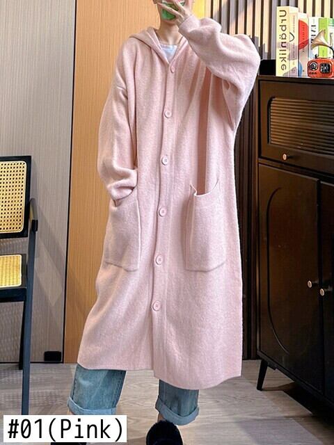 [EWQ] 長さセーターコート秋冬フード付き長袖ポケットピンクセータージャケット 16U3696 ロング オータム 秋物 ウィンター 冬物