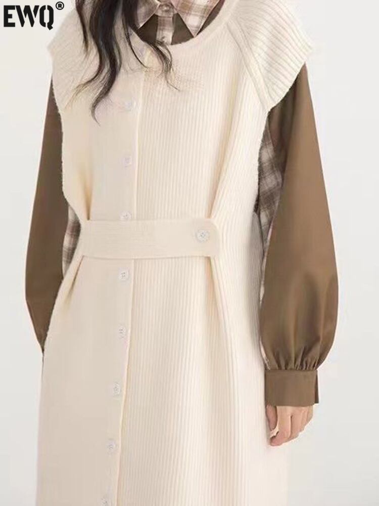 [EWQ] 包帯バックルセータードレスノースリーブベストニット Vestido ドレス秋冬 16U4356 オータム 秋物 ウィンター 冬物
