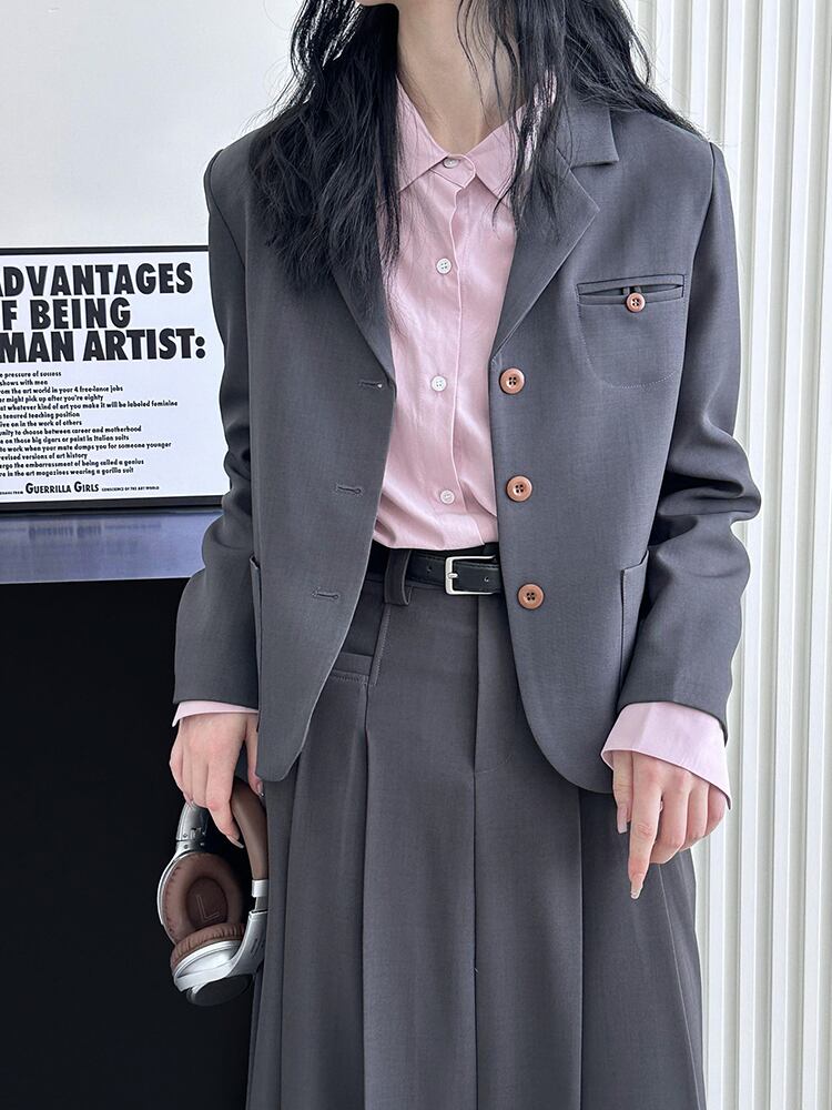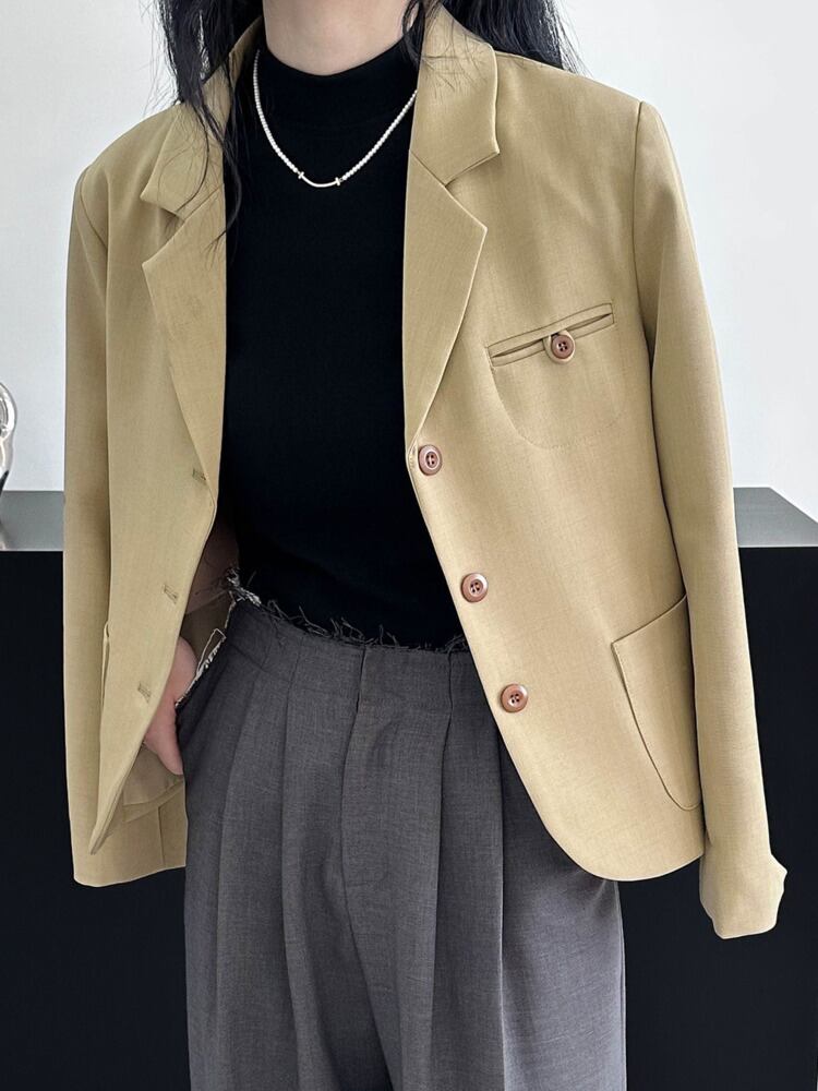 [EWQ] シングルブレストルーズブレザーコートオフィスレディ長袖アプリコットスーツジャケット秋冬 16U4778 ロング オータム 秋物 ウィンター 冬物 会社 学校 通勤や通学にも