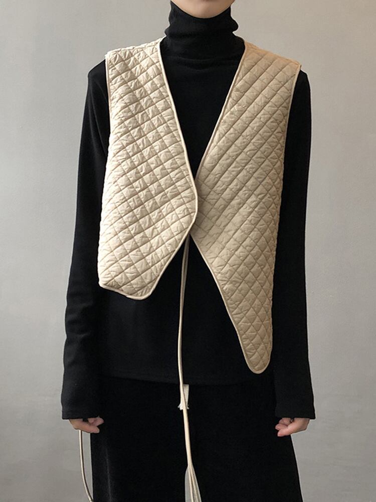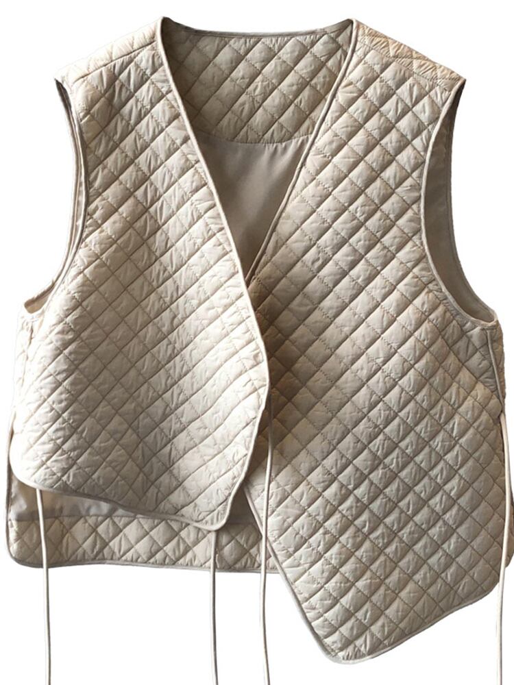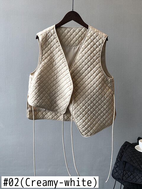 [EWQ] ウェーブ レースアップ コットン パファー ベスト レディース 冬 秋 ゆったり 厚手 暖かい ノースリーブ チョッキ 16U5070 オータム 秋物 ウィンター 冬物