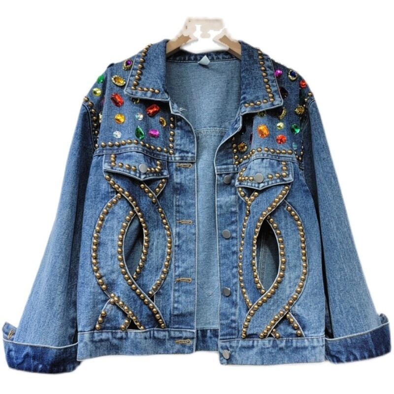 [EWQ] 長袖リベット レディース デニム ジャケット ルーズ ブルー コート 秋コート トレンド レディース オーバーコート 16U80505L ロング オータム 秋物