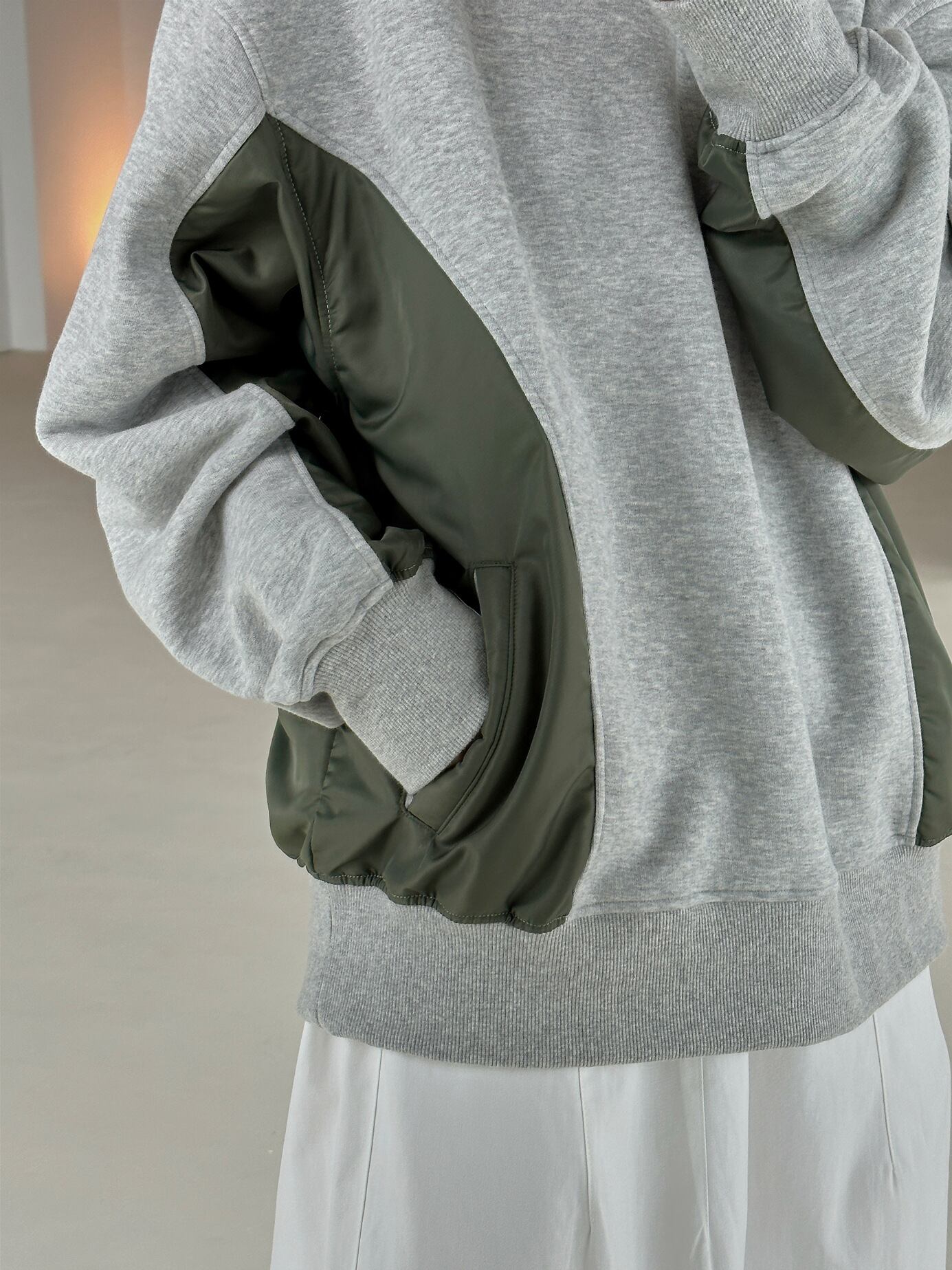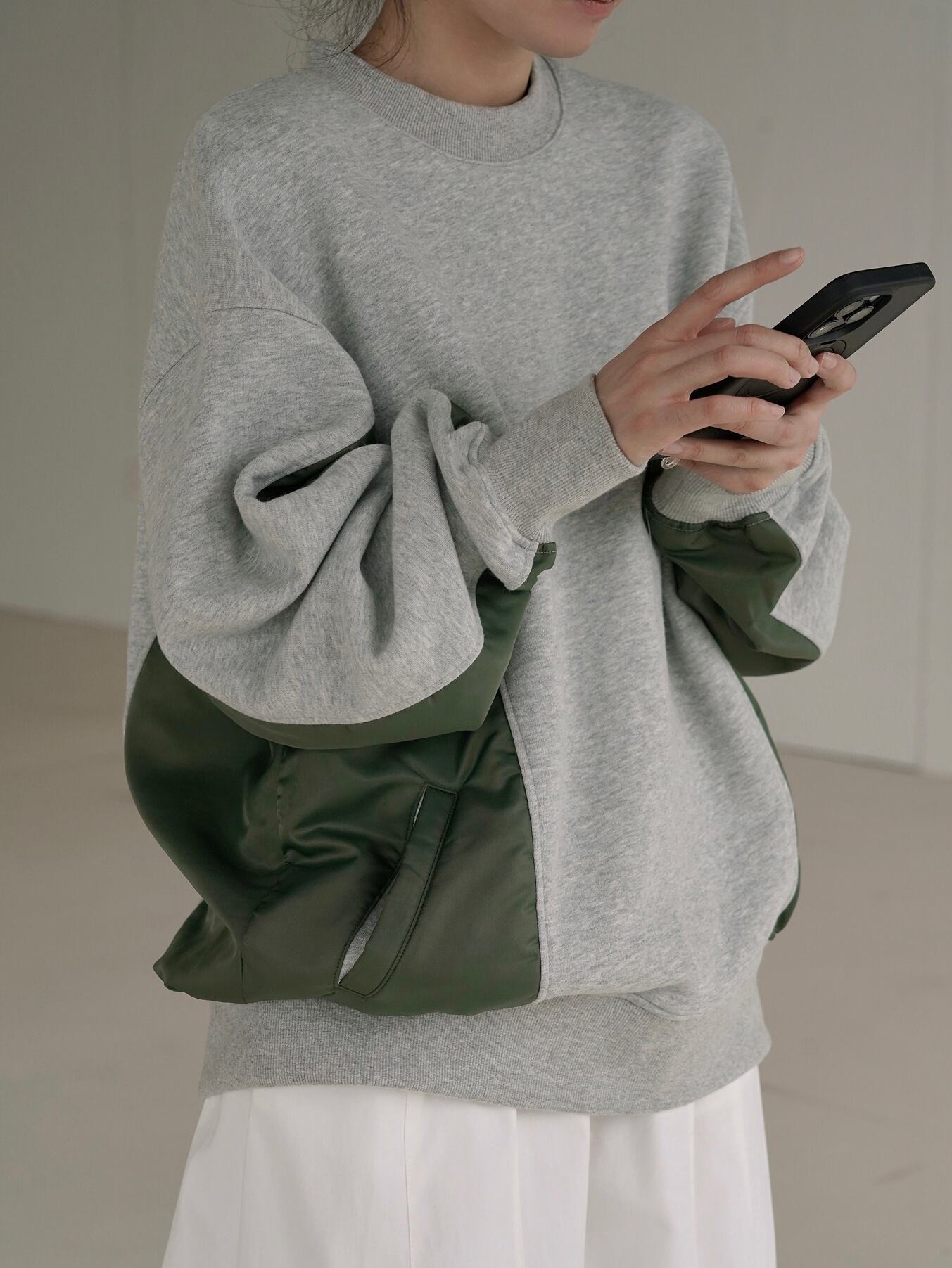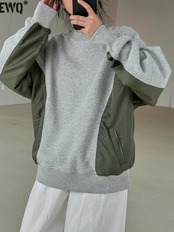 [EWQ] ストリートパッチワークコントラストスウェット長袖ルーズプルオーバートップ秋冬 16U5238 ロング シャツ オータム 秋物 ウィンター 冬物