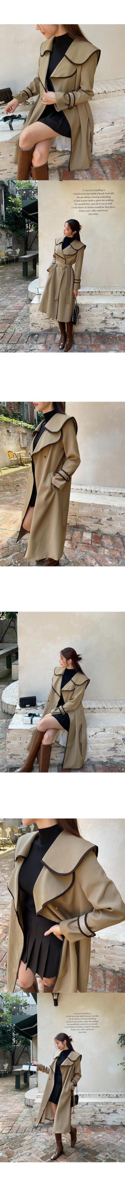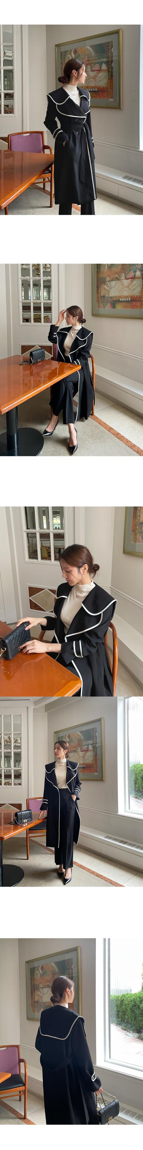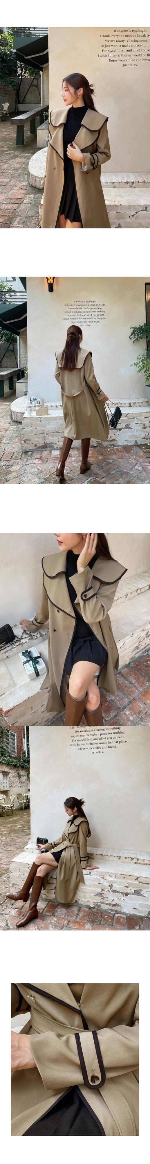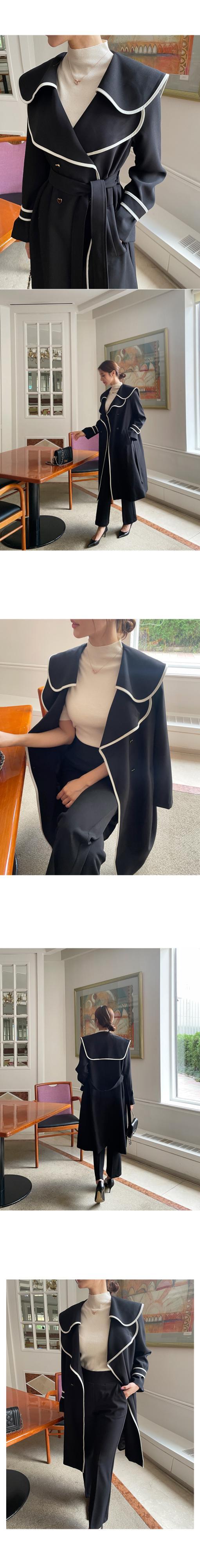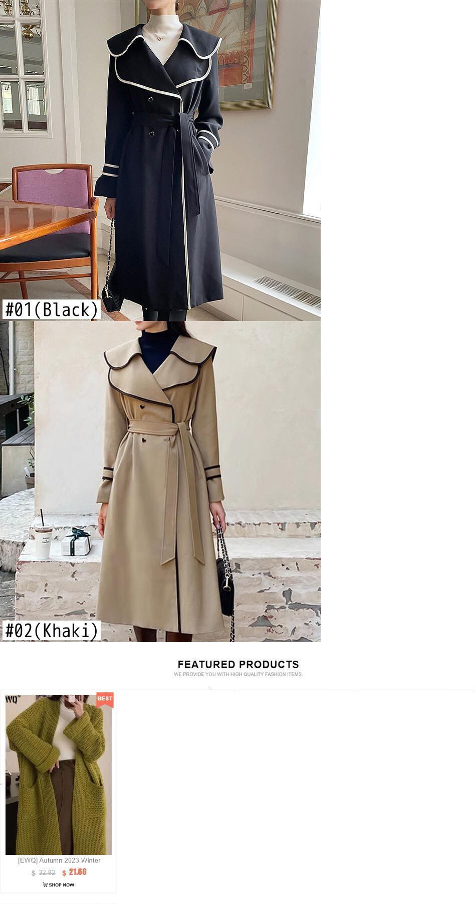 [EWQ] フリル ラペル コントラスト ウエストバンド ウインドブレーカー レディース 長袖 トレンチ コート 秋冬 16U4948 ロング オータム 秋物 ウィンター 冬物