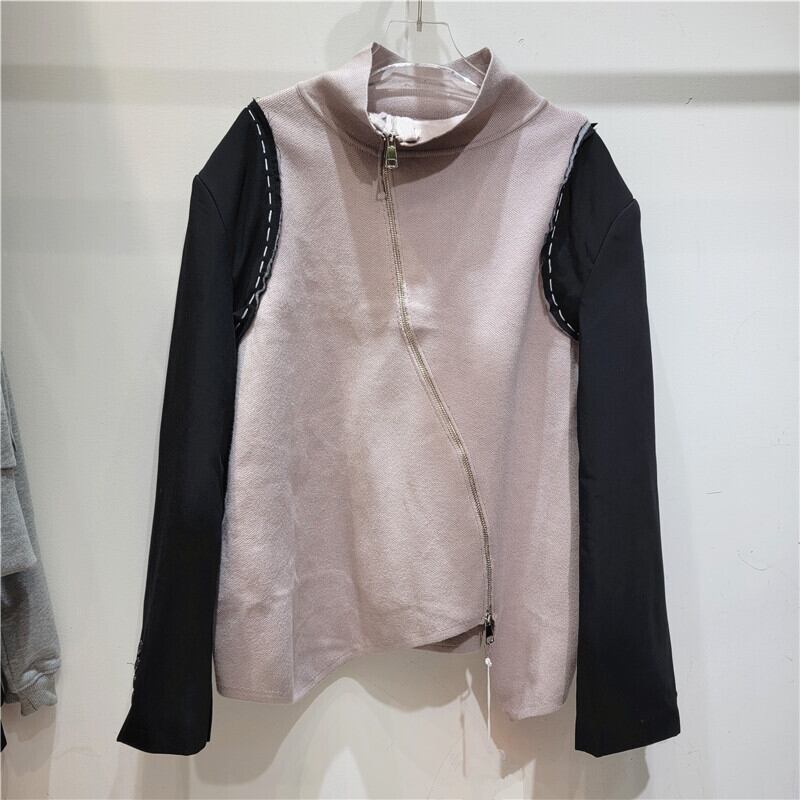 [EWQ] 非対称ジッパースウェット長袖中空アウトパッチワークルーズプルオーバートップ秋冬 16U5207 ロング シャツ オータム 秋物 ウィンター 冬物