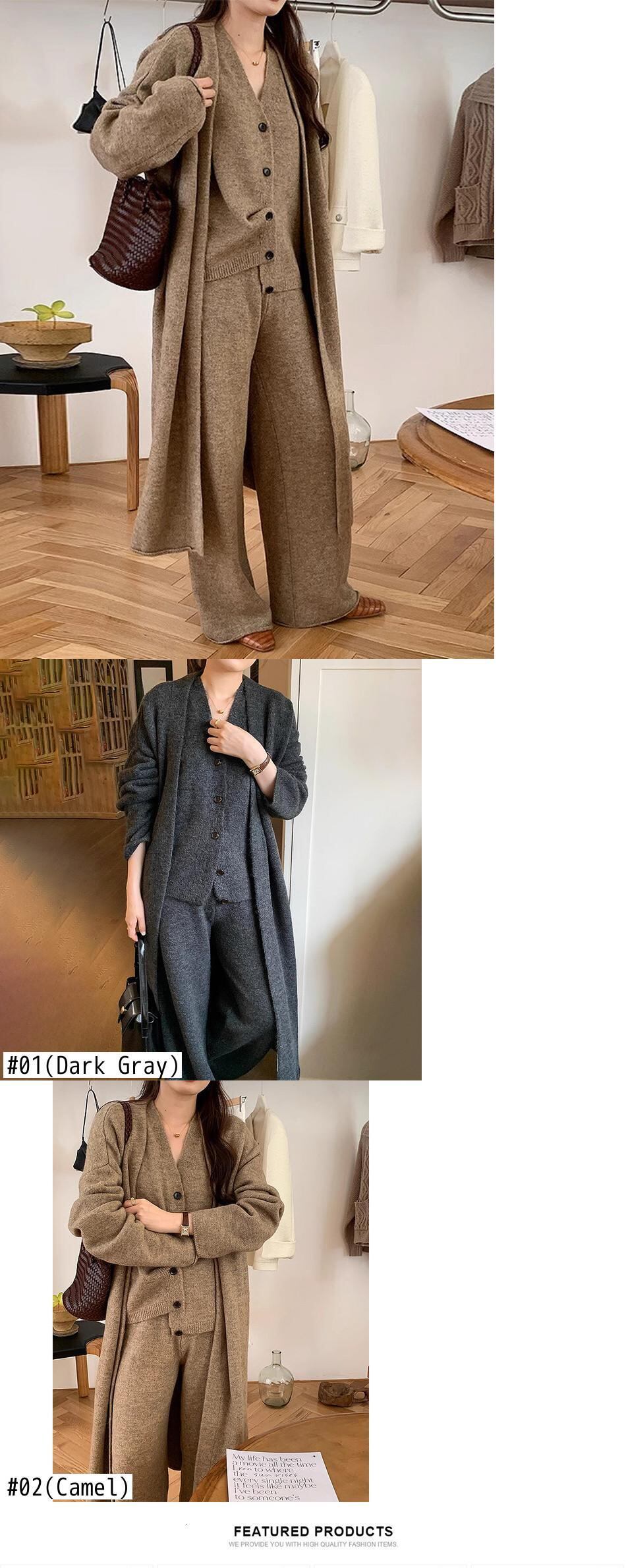 [EWQ] 厚手ニット 3 点セット長袖セーターコート + シングルブレストニットベスト + パンツ秋冬 ロング オータム 秋物 ウィンター 冬物