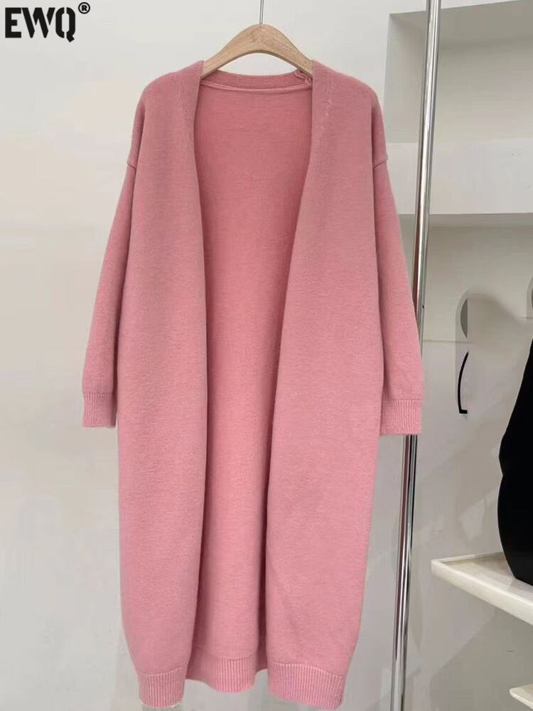 [EWQ] マルチカラー秋冬丈カーディガンコート長袖ルーズセータージャケット潮 16U4012 ロング オータム 秋物 ウィンター 冬物