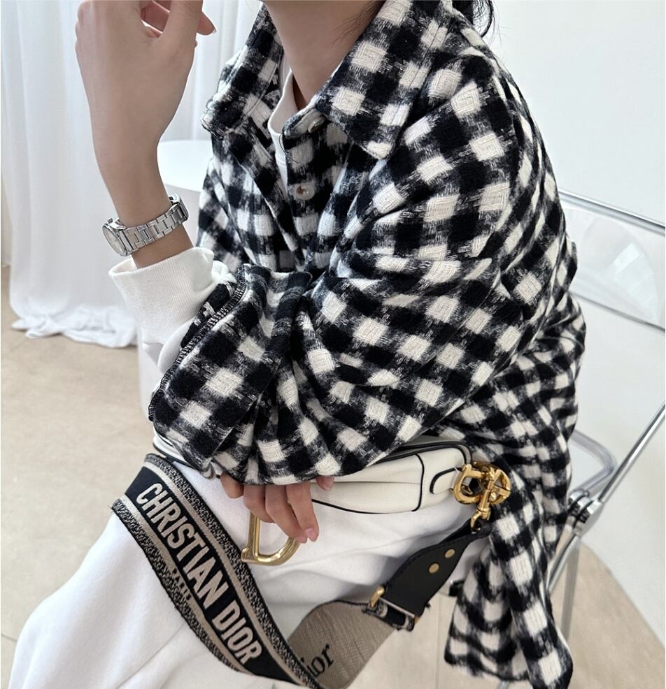 [EWQ] 多用途チェック柄コントラストウールコートシングルブレストルーズジャケット秋冬 16U5240 オータム 秋物 ウィンター 冬物