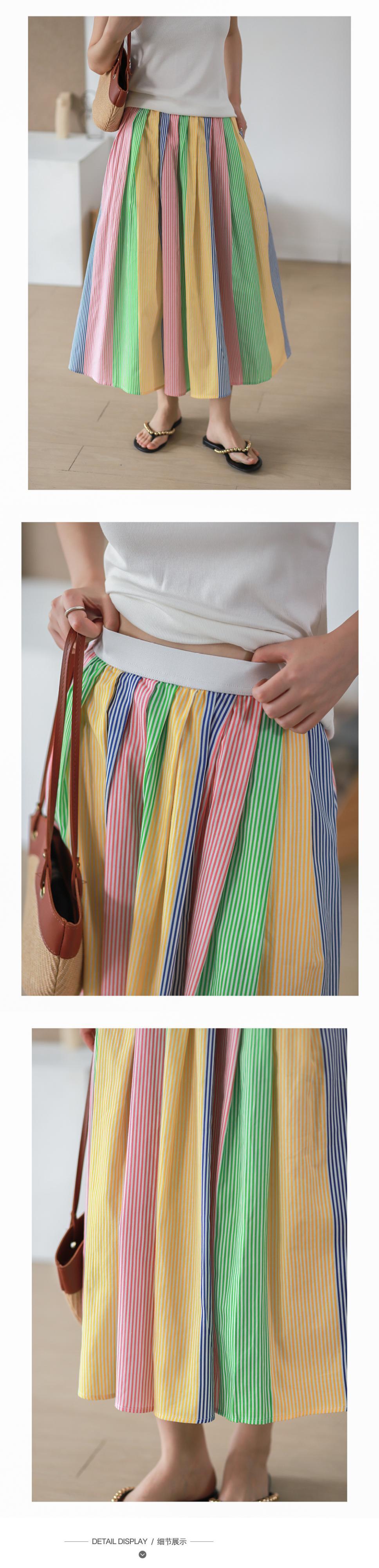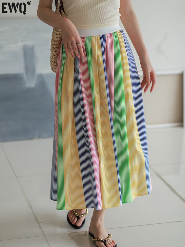 [EWQ] カラフルストライプサイドジッパースカート甘いウエストプリーツミッドカーフスカート秋 16U4329 大人ガーリー スウィート キュート カジュアル オータム 秋物