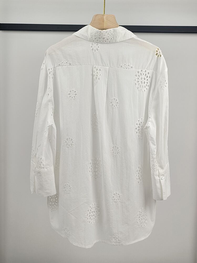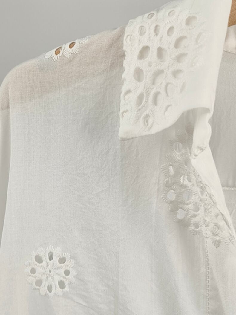 [EWQ] ホワイト中空刺繍シャツ長袖シングルブレストトップス秋冬 16U4956 ロング オータム 秋物 ウィンター 冬物