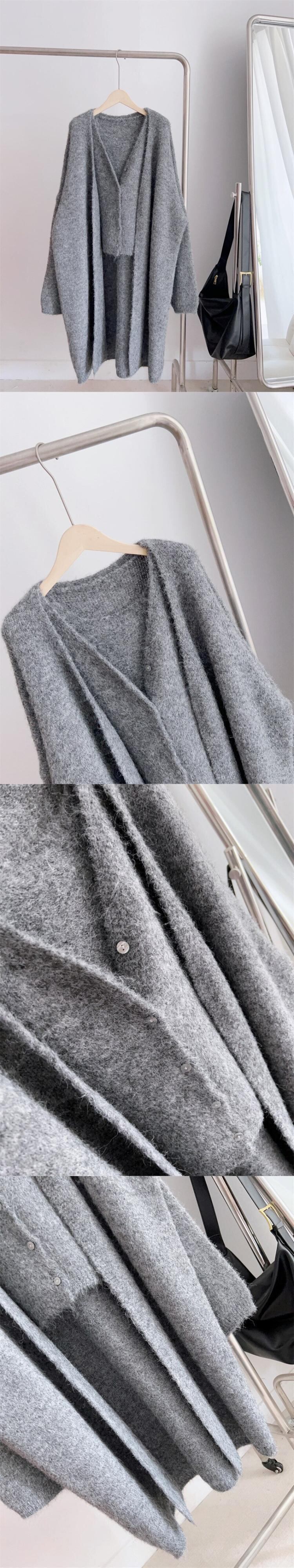 [EWQ] 長袖ルーズウールニットカーディガン + トレンディニットベストセータージャケット秋冬トップ 16U5165 ロング オータム 秋物 ウィンター 冬物