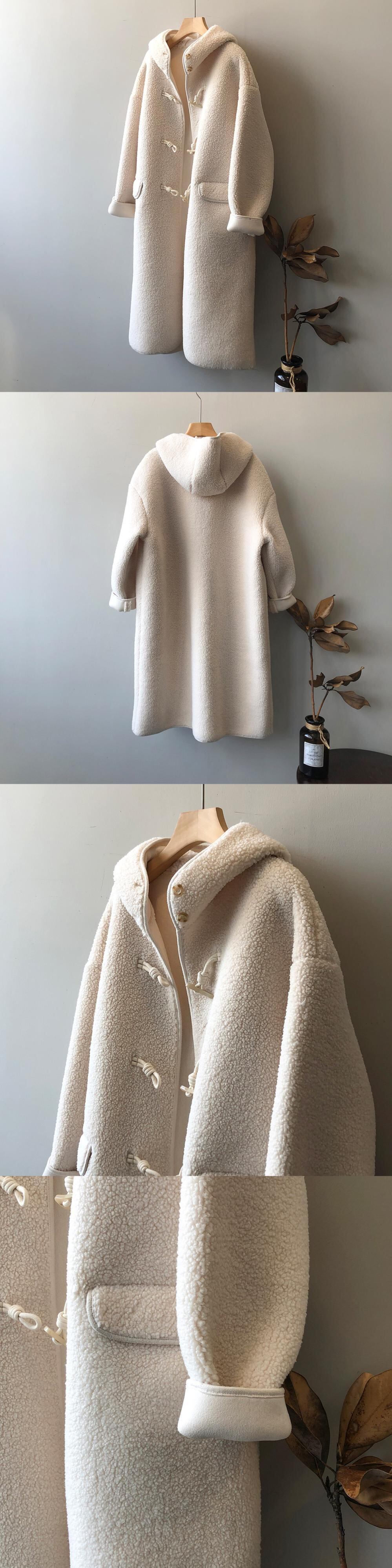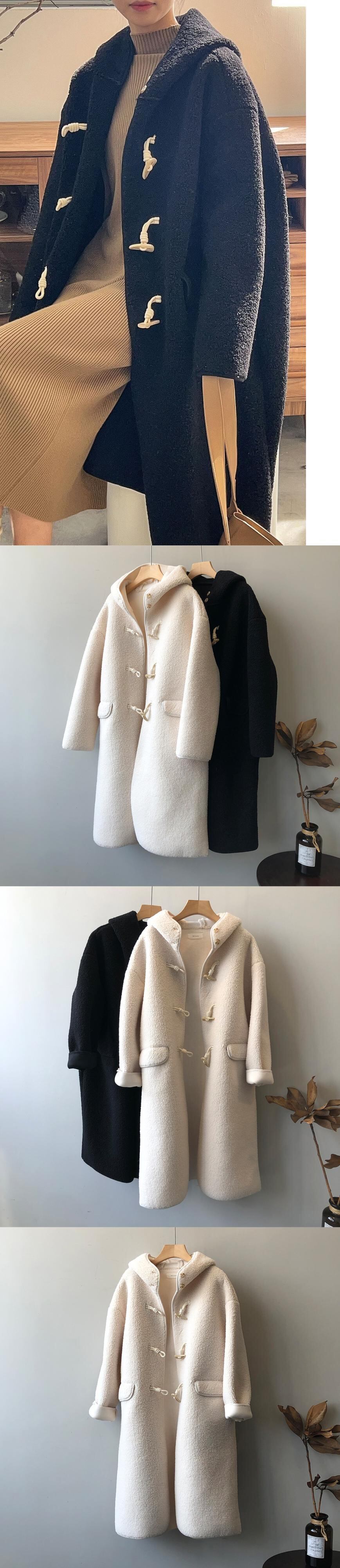 [EWQ] 暖かラムウールコートレディース厚手ホーンボタンウールオーバーコート冬秋潮長袖ジャケット 16U5066 ロング オータム 秋物 ウィンター 冬物