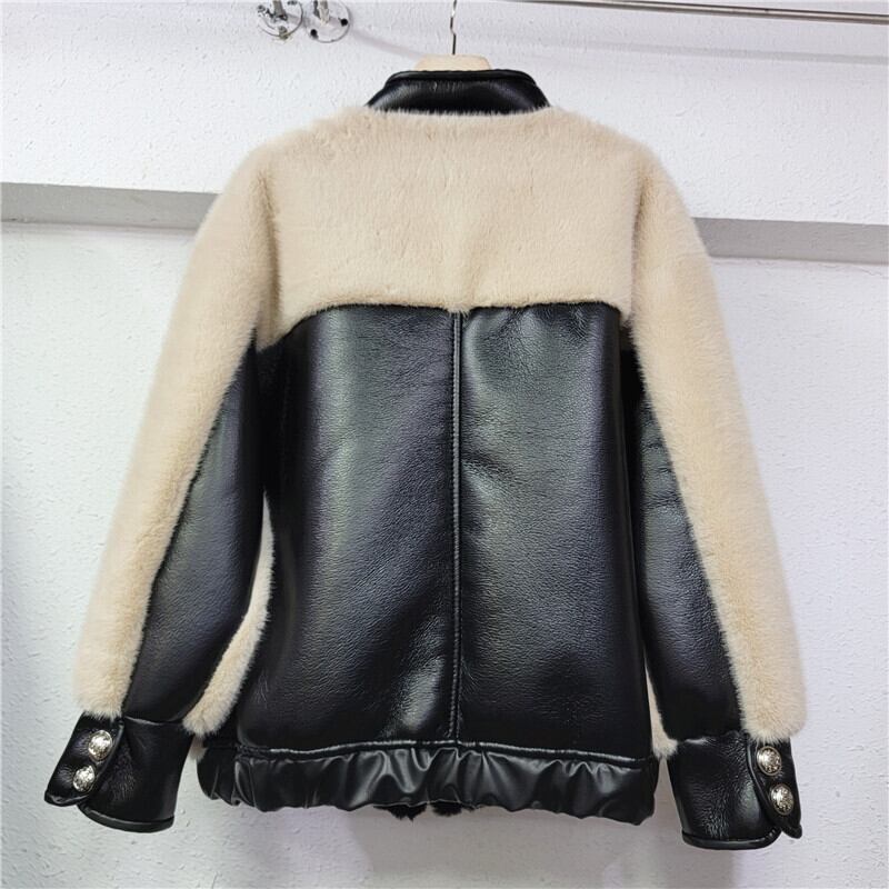 [EWQ] ストリート暖かラムスウールパッチワーク毛皮コート長袖レザースプライシングジャケット秋冬 16U5174 ロング オータム 秋物 ウィンター 冬物