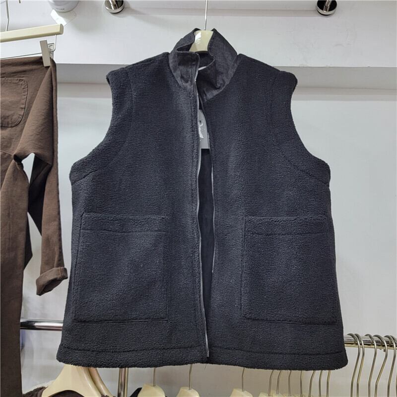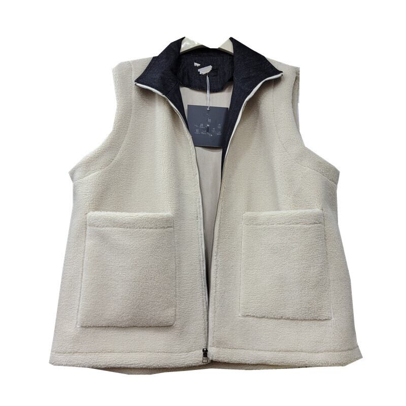 [EWQ] スプライスラムズ ウール ベスト レディース ビッグポケット 装飾 ジッパー ノースリーブ ファー ジャケット 秋冬 16U5180 オータム 秋物 ウィンター 冬物