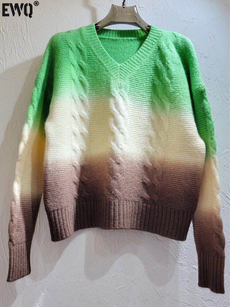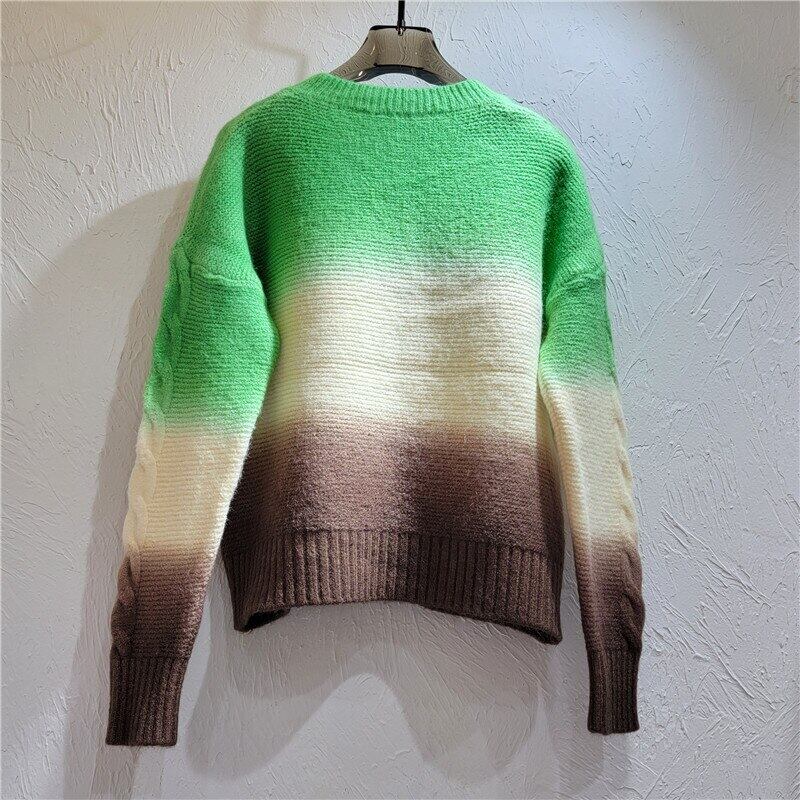 [EWQ] Y2k グラデーショングリーンセーター長袖ニットジャンパー秋冬潮美しいプルオーバートップ 16U5162 ロング オータム 秋物 ウィンター 冬物