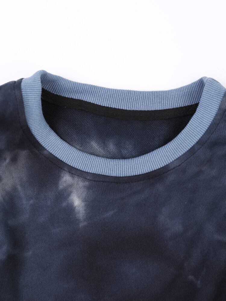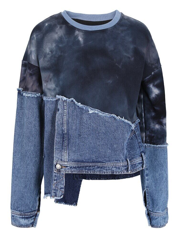 [EWQ] タイダイスウェットルースデニムスプライス長袖不規則パッチワークプルオーバー秋潮トップ 6Y9164 ロング シャツ オータム 秋物