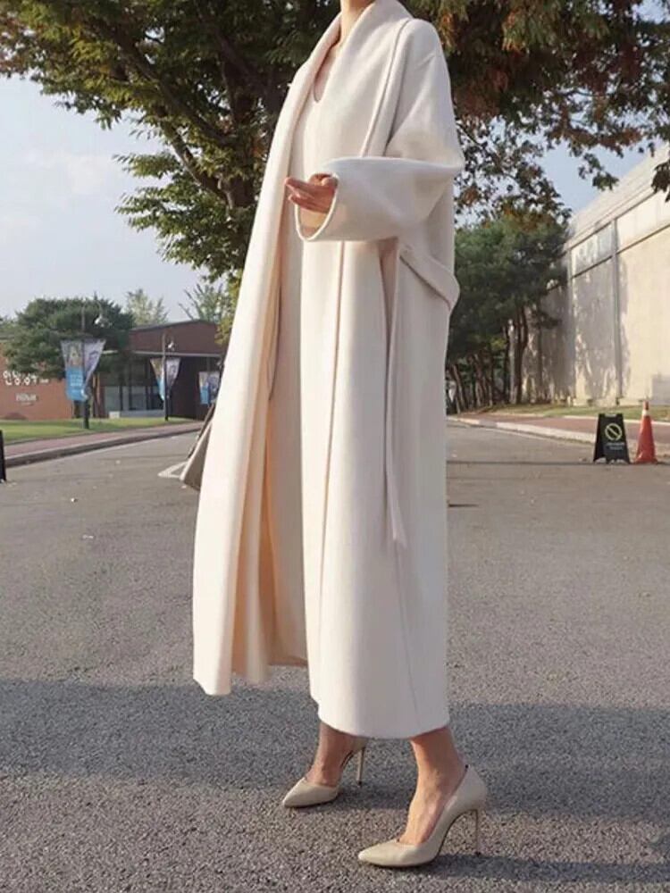 [EWQ] ウールコートシック長袖ルーズホワイトウールオーバーガーメントコート秋冬カシュミールマンテル U474 ロング オータム 秋物 ウィンター 冬物