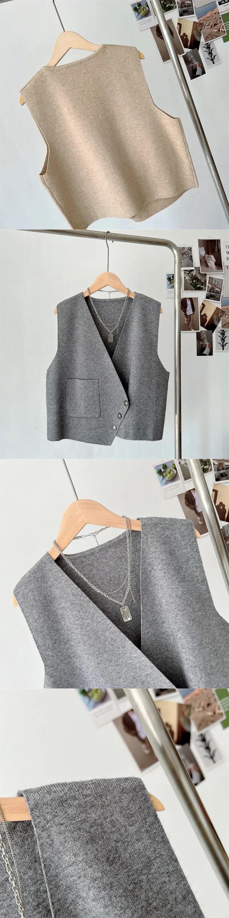 [EWQ] 非対称シングルブレスト V ネックニットベストゆったりノースリーブセータータンクトップ秋冬 16U4215 オータム 秋物 ウィンター 冬物 Vネック