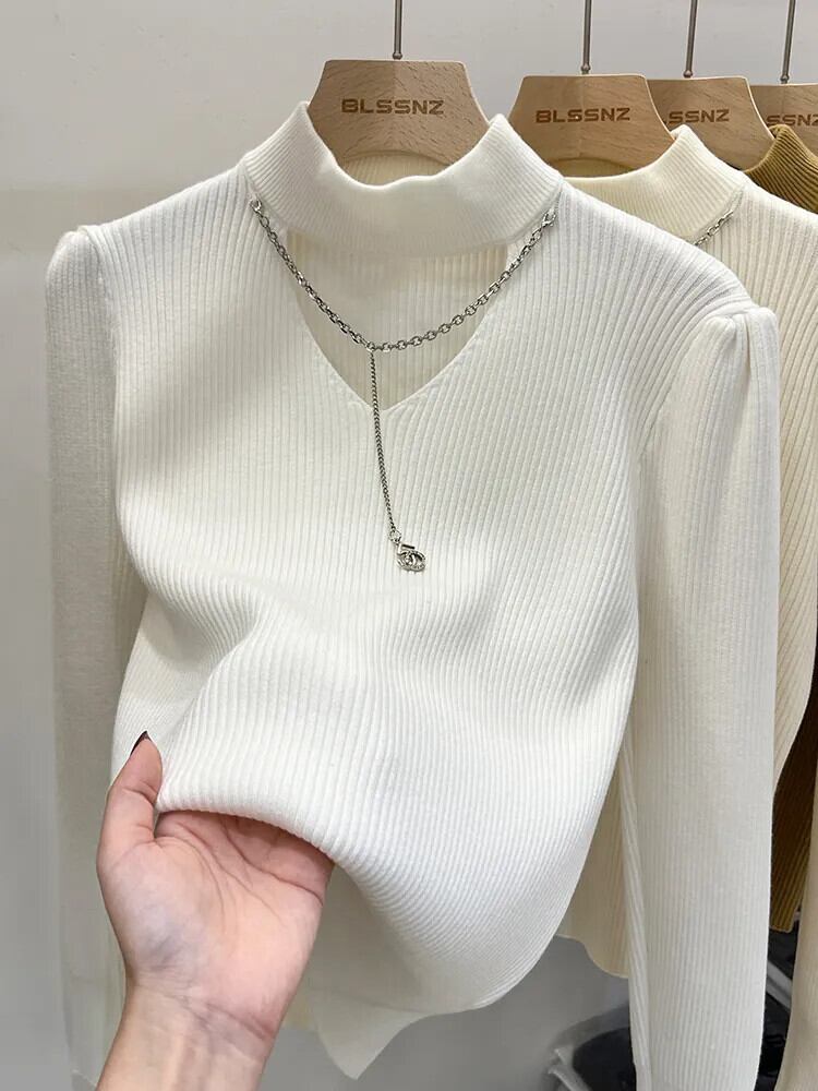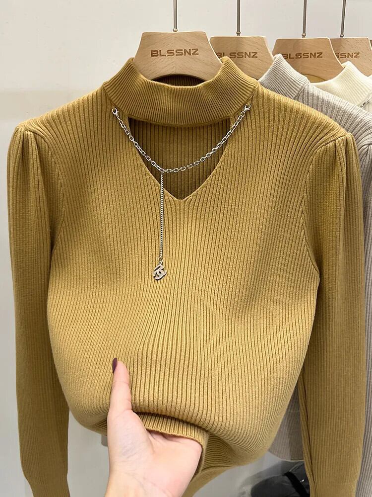 [EWQ] O ネックセーター長袖弾性スリムプルオーバーニット秋冬 16U4712 ロング エラスティック 伸縮 オータム 秋物 ウィンター 冬物 Oネック