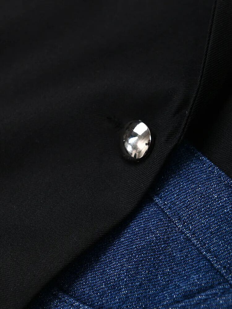 [EWQ] ストリート長袖シングルブレストルーズブラックスーツジャケットデニムパッチワークブレザーコート秋 U441 ロング オータム 秋物