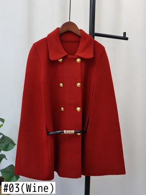 [EWQ] ホワイトダブルブレストケープウールブレンドマント生き抜くコートオーバーコート秋冬 16U4904 オータム 秋物 ウィンター 冬物
