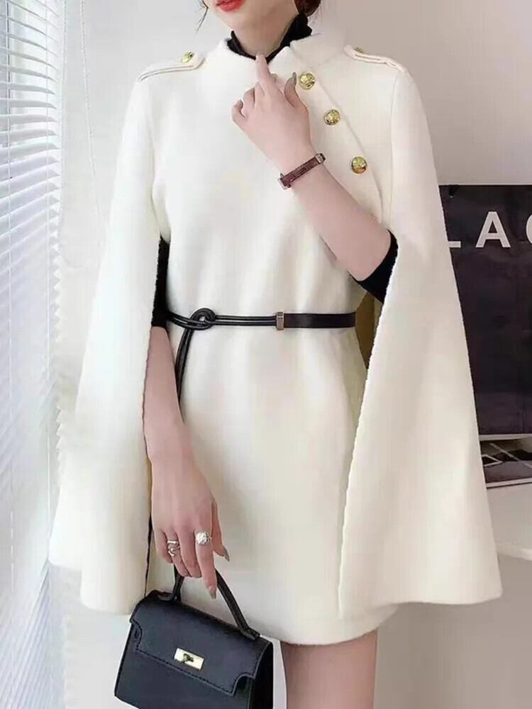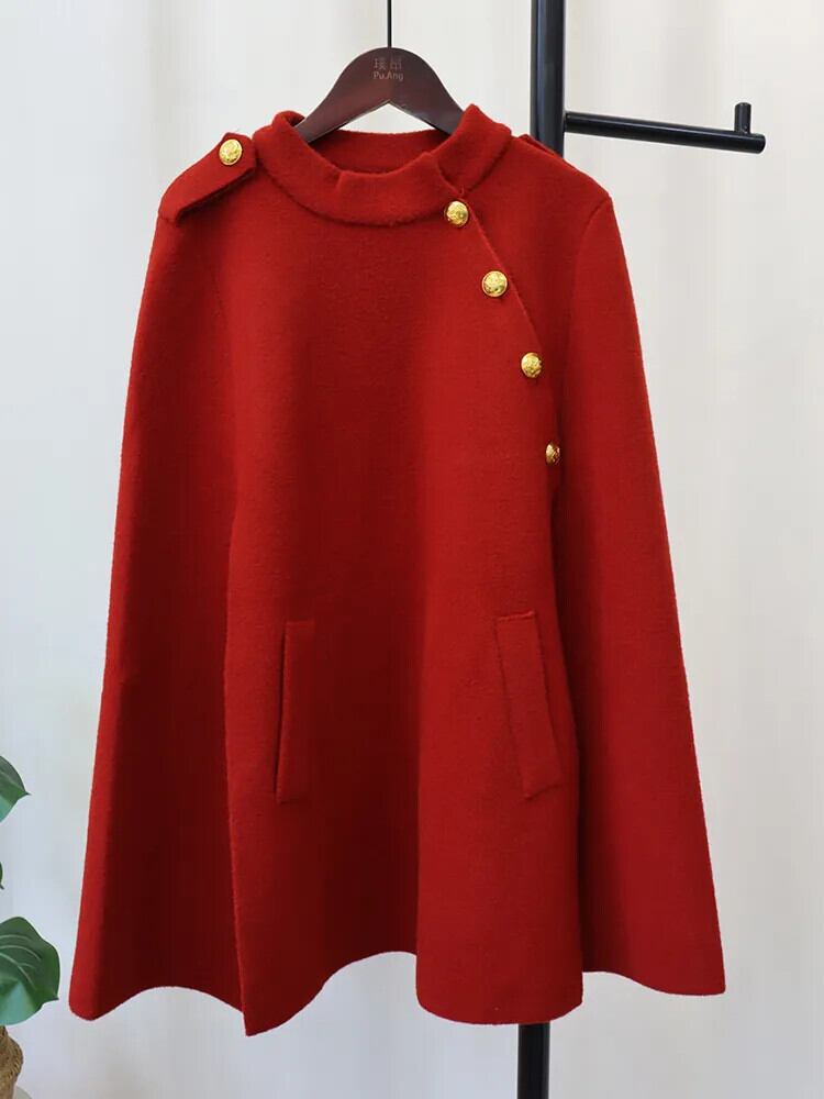 [EWQ] クリスマスニット暖かウールコート不規則厚いオーバーコート高級ケープ生き抜くジャケット秋冬 U4913 オータム 秋物 ウィンター 冬物