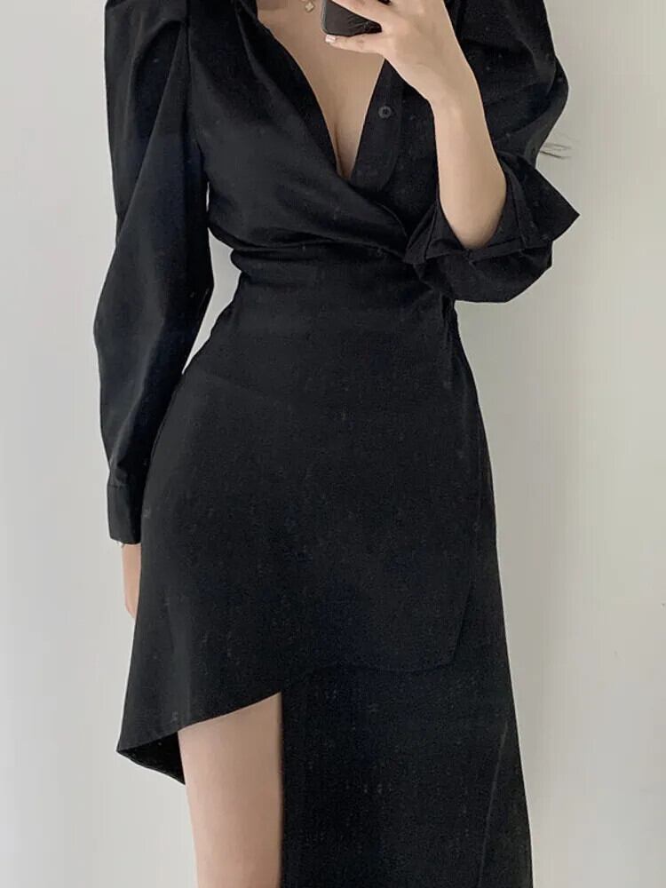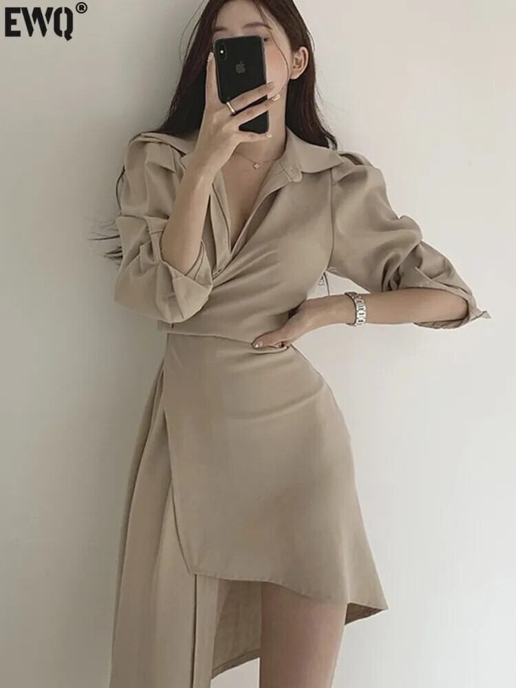[EWQ] 不規則包帯バックルウエストドレス長袖スリムショートドレス秋 Vestido 16U3844 ロング オータム 秋物