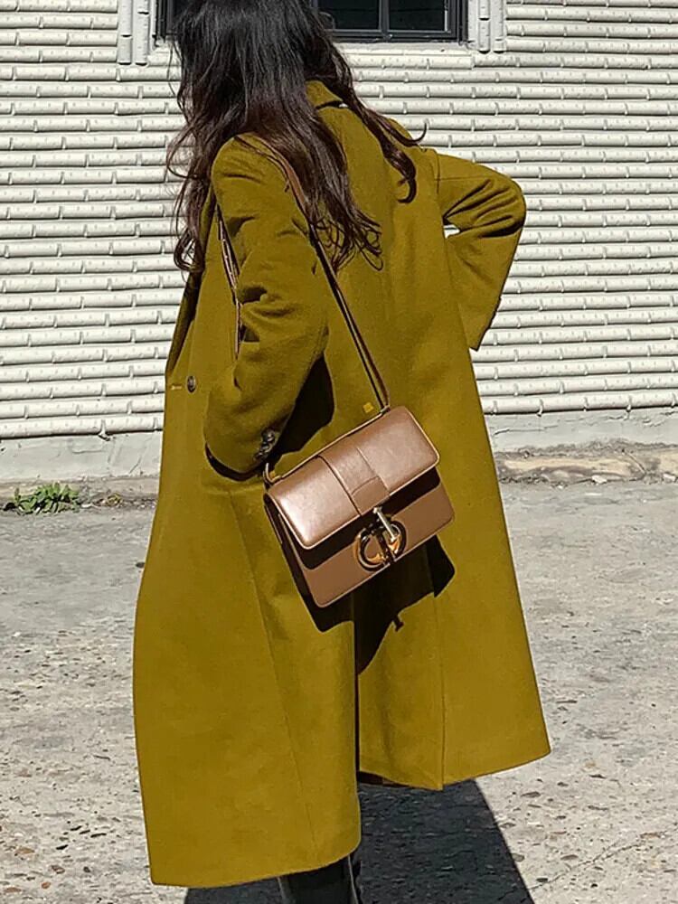 [EWQ] ノッチポケットウールコート長袖ワンボタンウールジャケット秋冬厚手 16U4247 ロング オータム 秋物 ウィンター 冬物