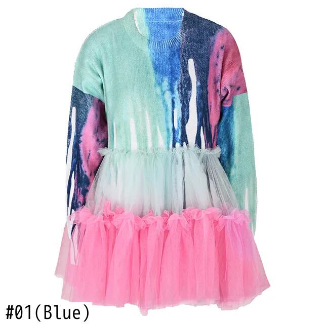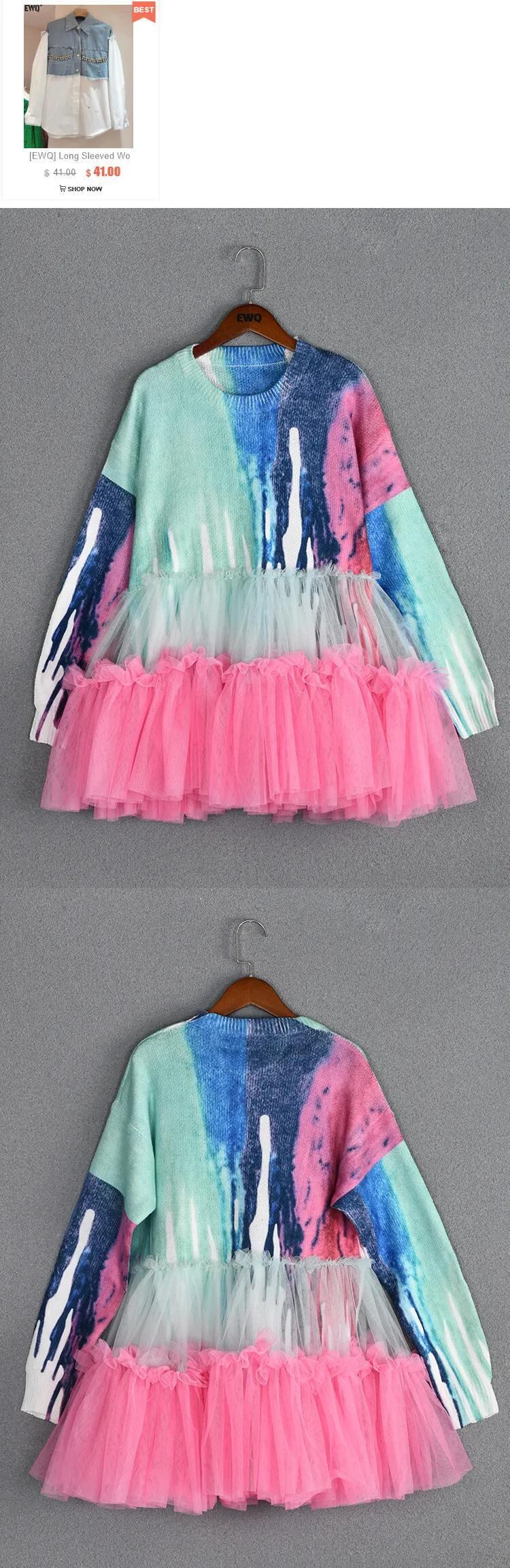 [EWQ] 長袖 O ネックタイダイニットメッシュセーター美しいニットプルオーバー美しいトップス冬秋 ロング オータム 秋物 ウィンター 冬物 Oネック