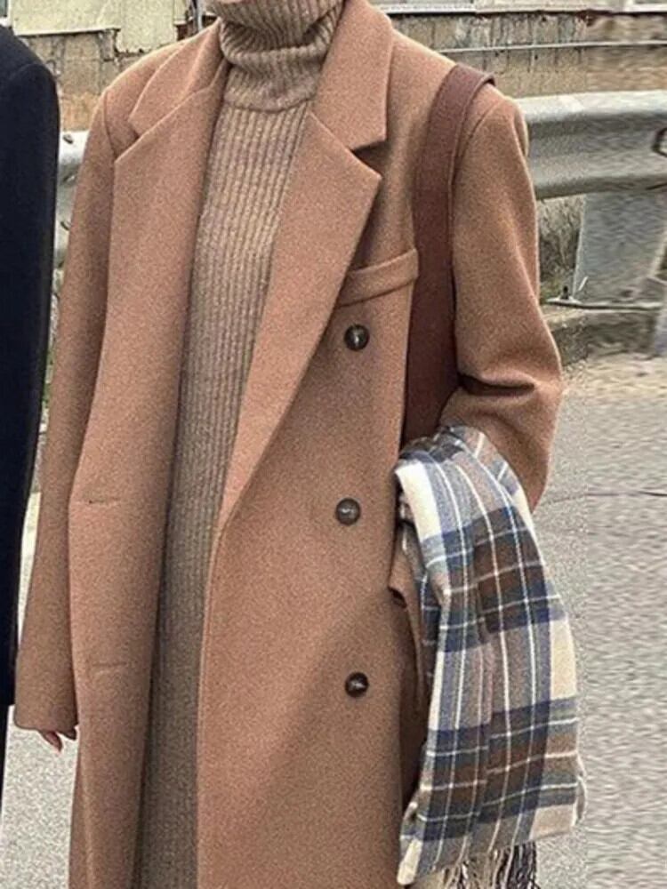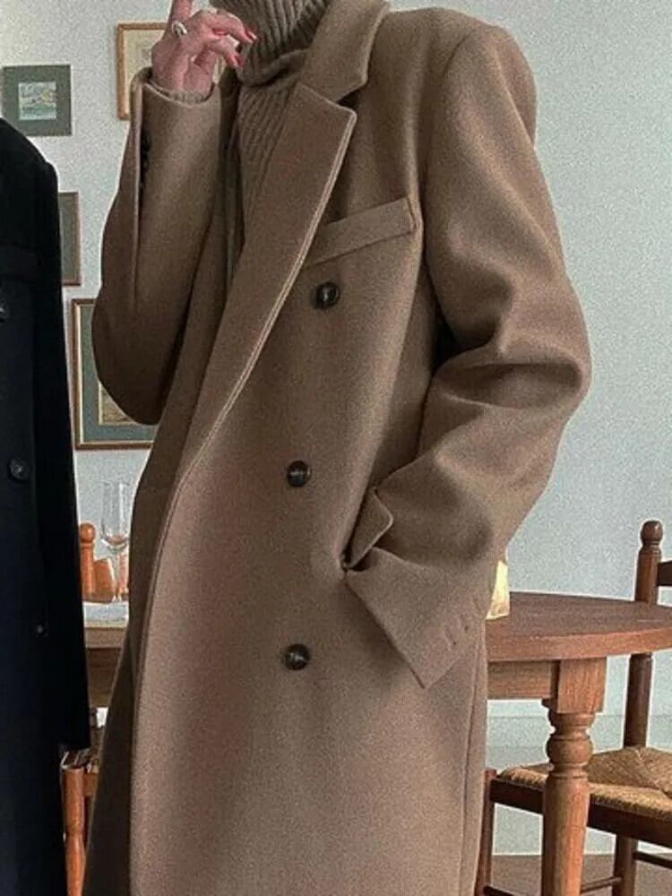 [EWQ] ウールコートダブルブレストルーズ長袖ウール暖かいウールジャケット秋冬 16U4556 ロング オータム 秋物 ウィンター 冬物