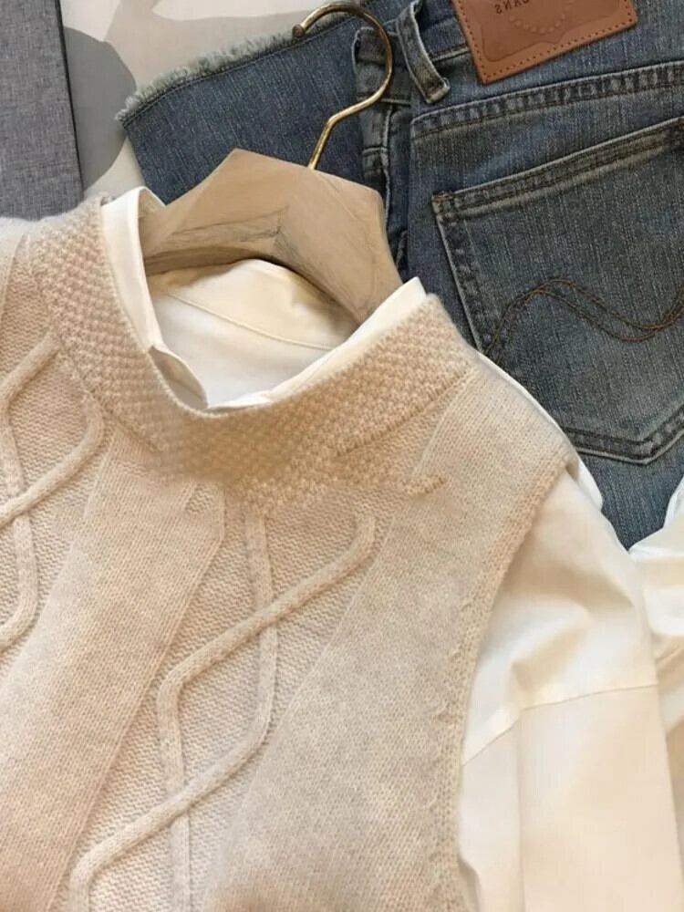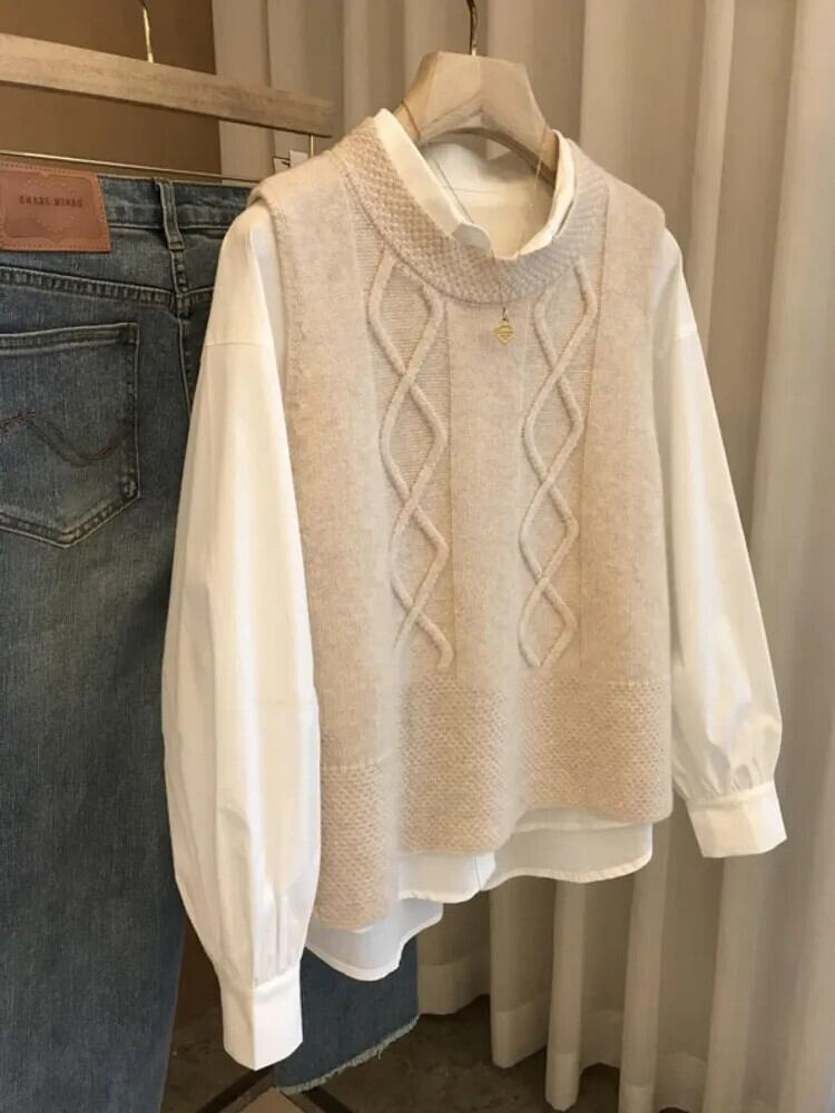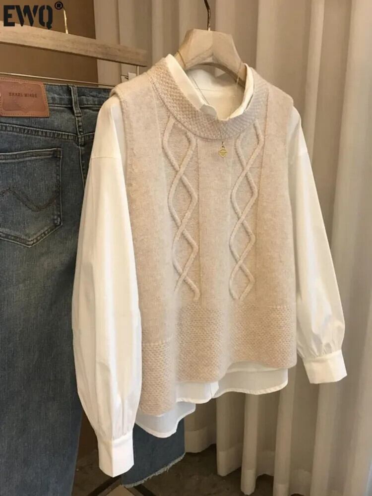 [EWQ] 甘いトレンディシングルブレストと美しいアウタープルオーバーニットバックスプリットニットベストアプリコットタンクO042 大人ガーリー スウィート キュート カジュアル