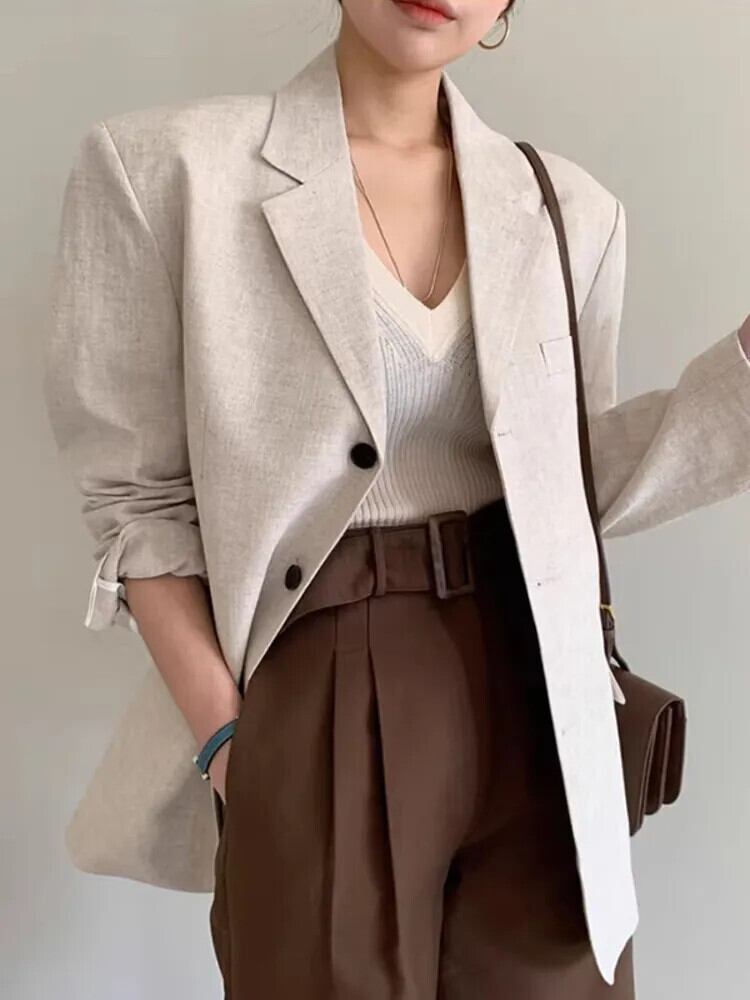 [EWQ] バック分割気質ブレザーコート長袖シングルブレストオフィスレディスーツジャケット秋冬 6U3847 ロング オータム 秋物 ウィンター 冬物 会社 学校 通勤や通学にも