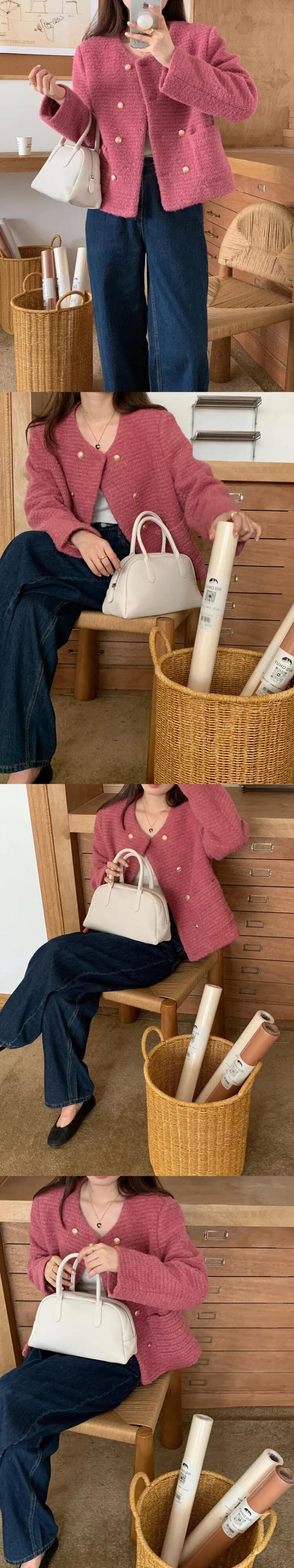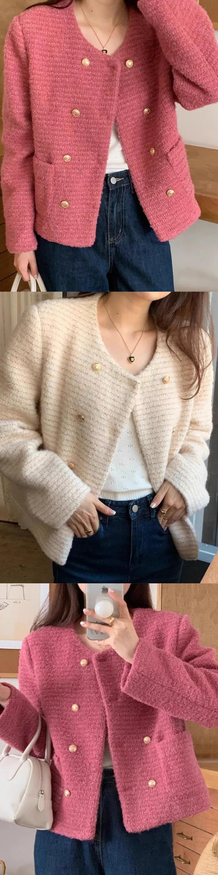 [EWQ] O ネックメタルダブルブレストカーディガンコート甘いルーズ多用途長袖セーターコート秋冬 16U5318 ロング 大人ガーリー スウィート キュート カジュアル オータム 秋物 ウィンター 冬物 Oネック