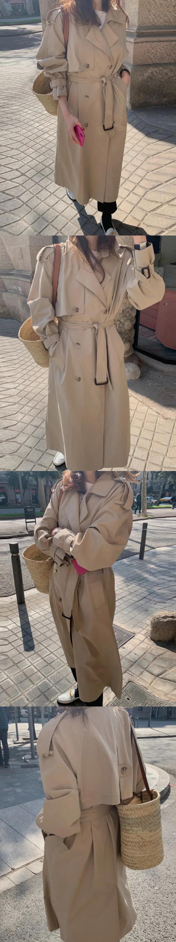 [EWQ] 包帯付きウインドブレーカージャケット秋潮長袖ダブルブレストトレンチコート 16U3593 ロング オータム 秋物