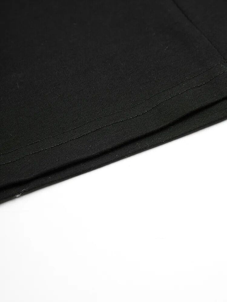 [EWQ] ブラック巾着カラーブロックビッグサイズドレスフード付き半袖ルーズ潮ドレス秋 1DF7156 ハーフスリーブ オータム 秋物