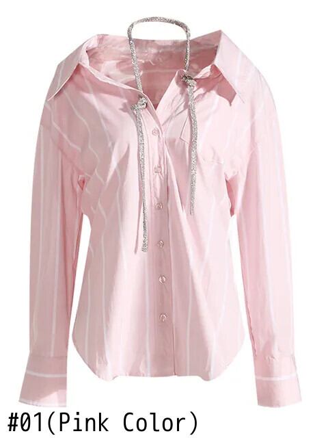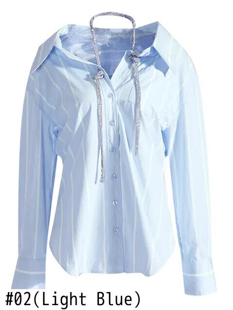 [EWQ] ラインストーンストライプビッグサイズシャツラペル長袖ルーズフィットシャツ潮冬秋 17A9542 ロング オータム 秋物 ウィンター 冬物