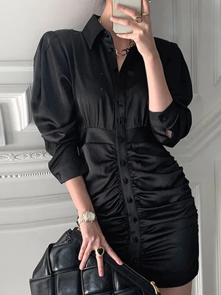 [EWQ] シングルブレストショートドレスセクシープリーツヒップラップミニドレス秋美しいアプリコット A4141 オータム 秋物