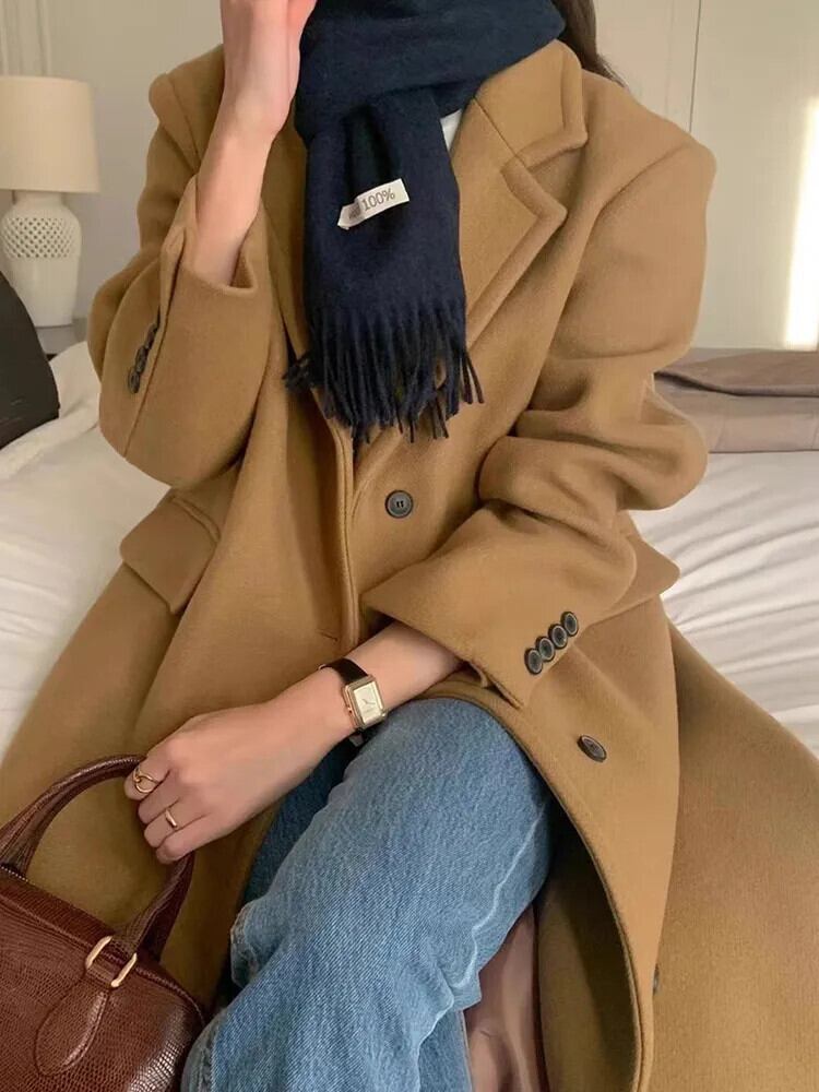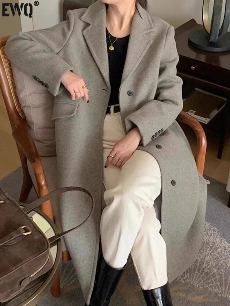 [EWQ] 冬厚いウールコートシングルブレスト大きポケットルーズ生き抜く秋 16U4446 オータム 秋物 ウィンター 冬物