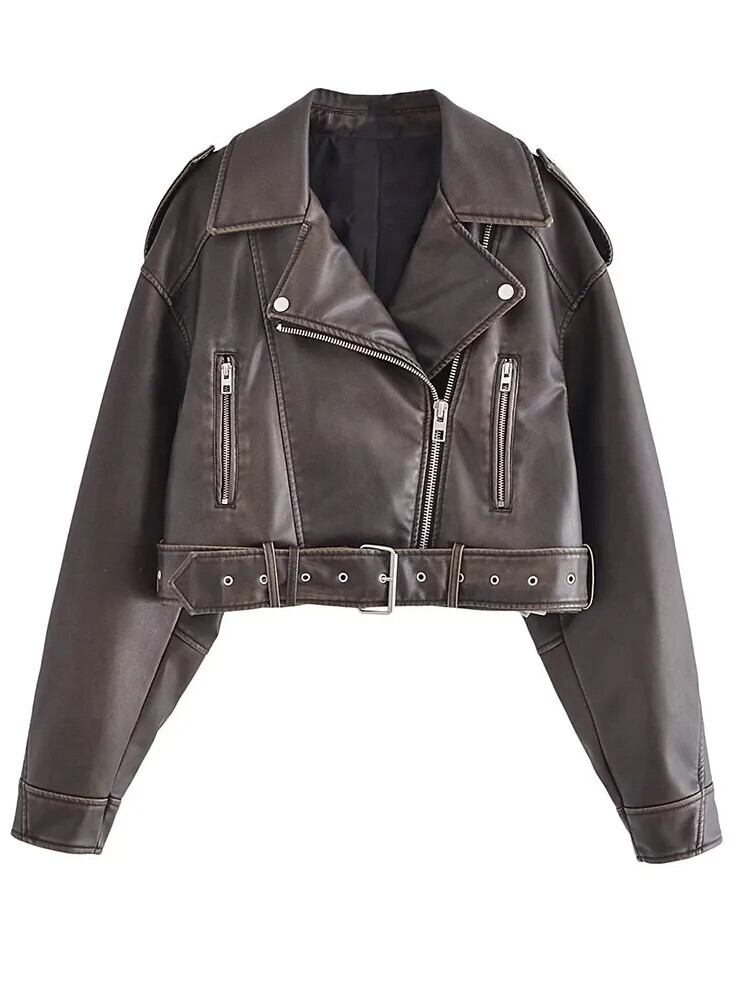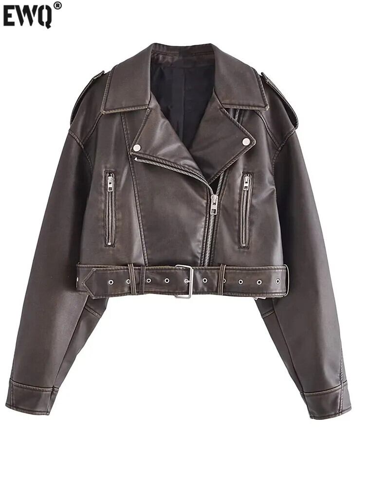 [EWQ] グラデーションレザージャケットジッパーポケット包帯バックルジップアップ PU ジャケットコート秋冬 16U4269 オータム 秋物 ウィンター 冬物