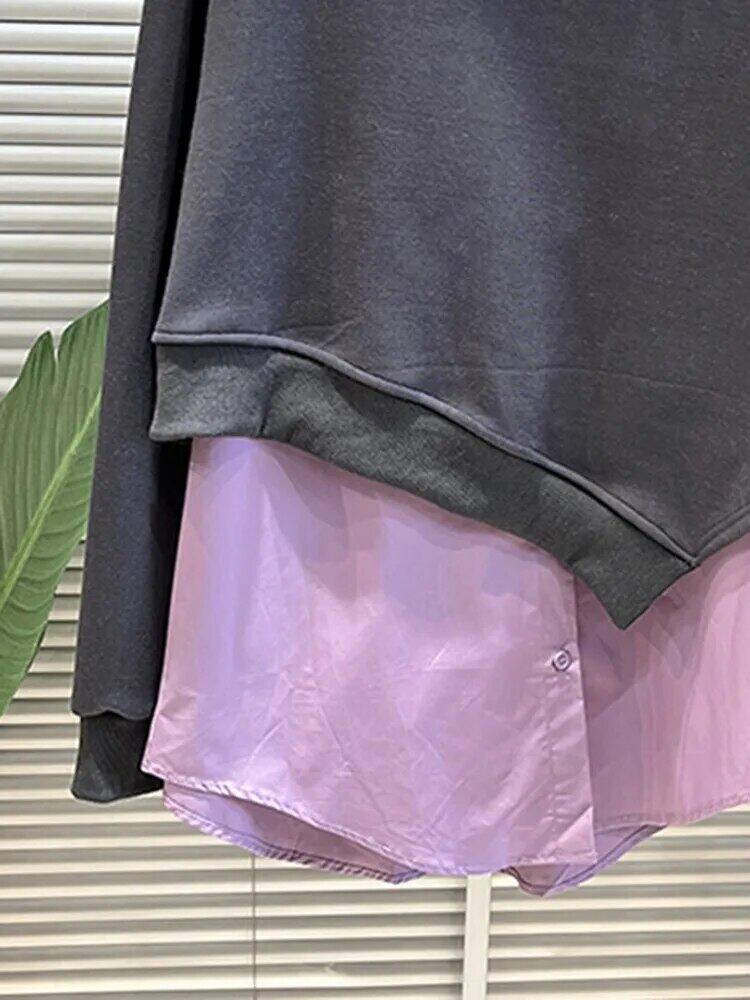 [EWQ] 長袖プルオーバー スウェット レディース + パープル ルーズ ラペル シャツ 2 点セット 秋冬 トップス 16U4631 ロング オータム 秋物 ウィンター 冬物