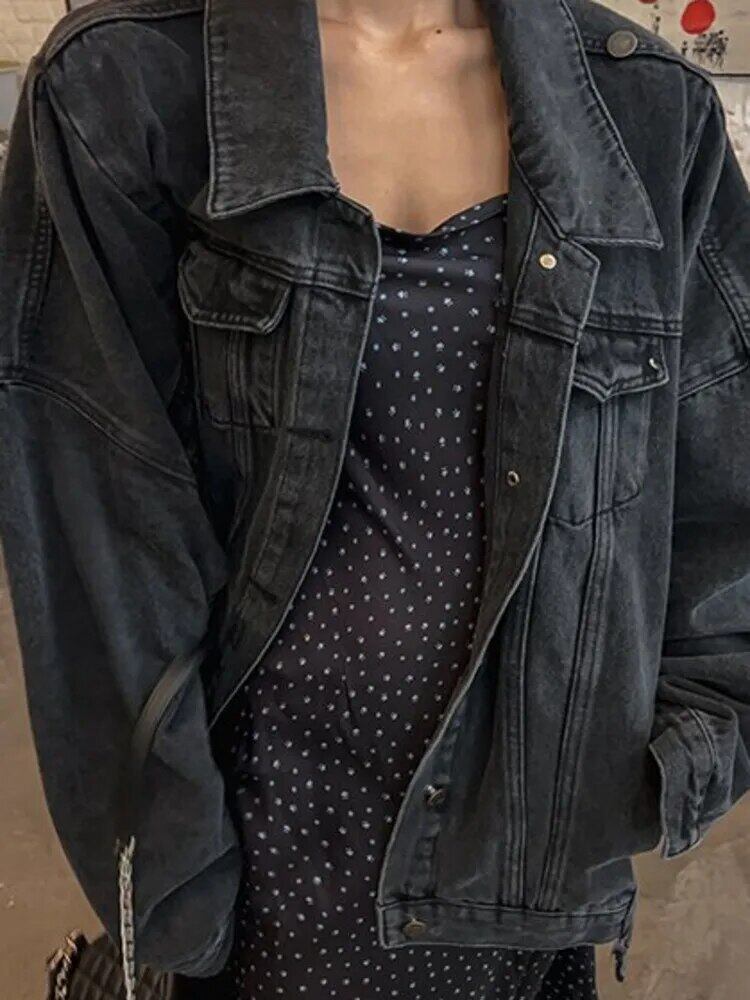 [EWQ] ストリート非対称パッチワークブルーデニムジャケットバットウィングスリーブルーズジャケットコート秋冬 16U4617 オータム 秋物 ウィンター 冬物