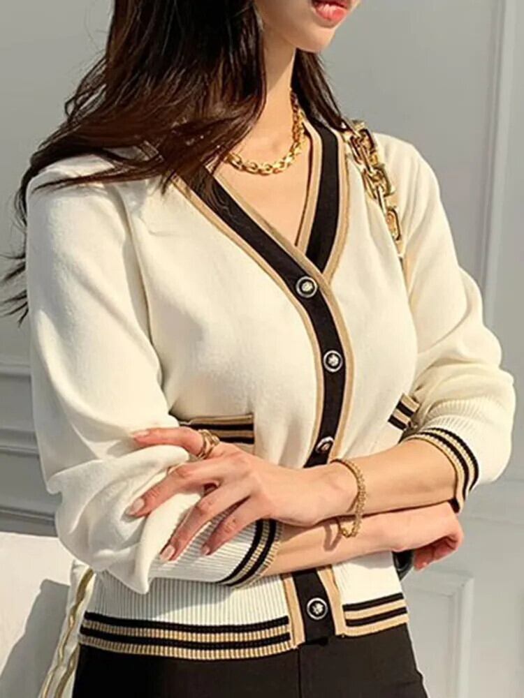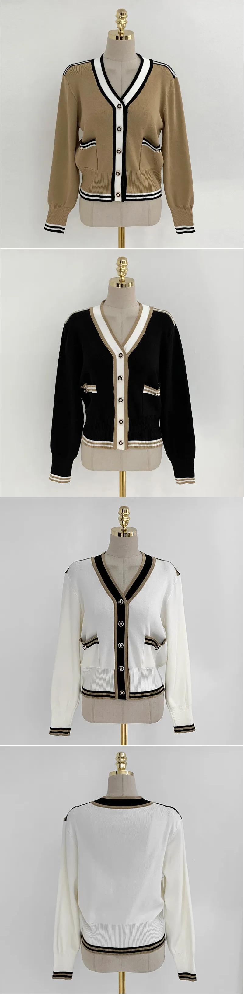 [EWQ] ストライプ シングルブレスト セーター ジャケット レディース 長袖 厚手 カーディガン コート 秋冬 16U5086 ロング オータム 秋物 ウィンター 冬物