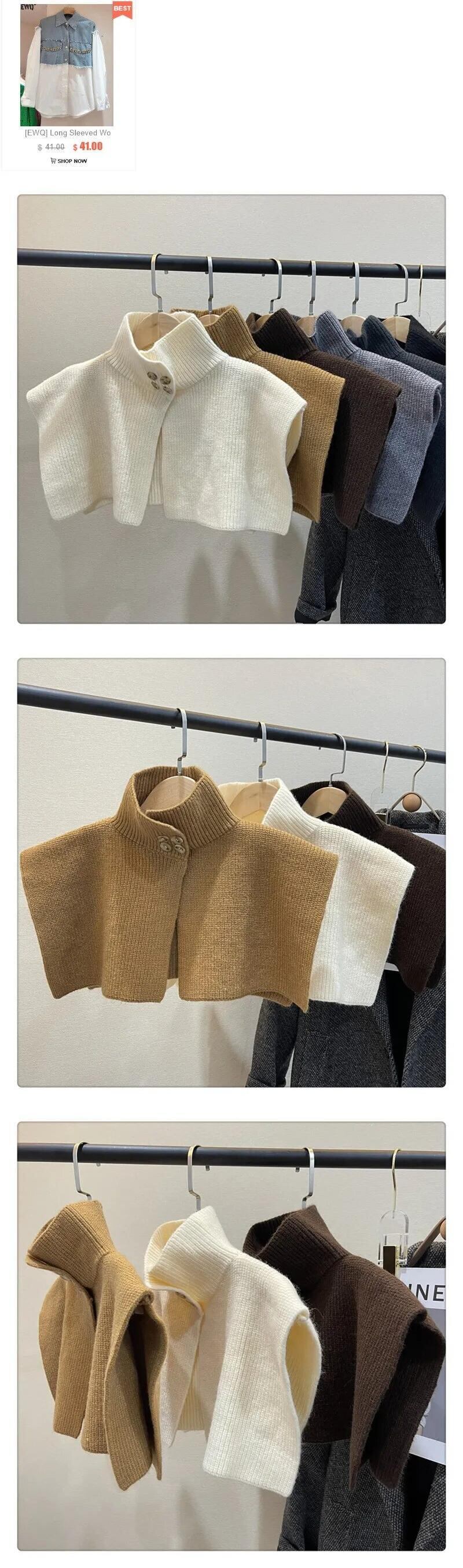 [EWQ] 冬保温ネックニットショールフェイク襟ボタンカッパオールマッチ秋トップ 16U4877 オータム 秋物 ウィンター 冬物