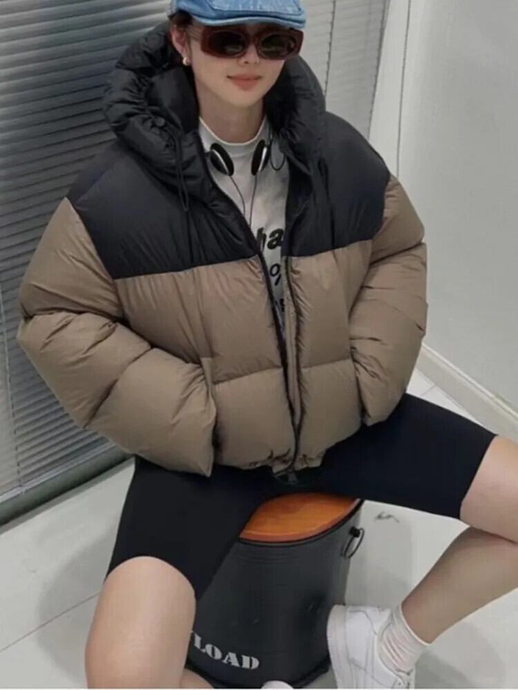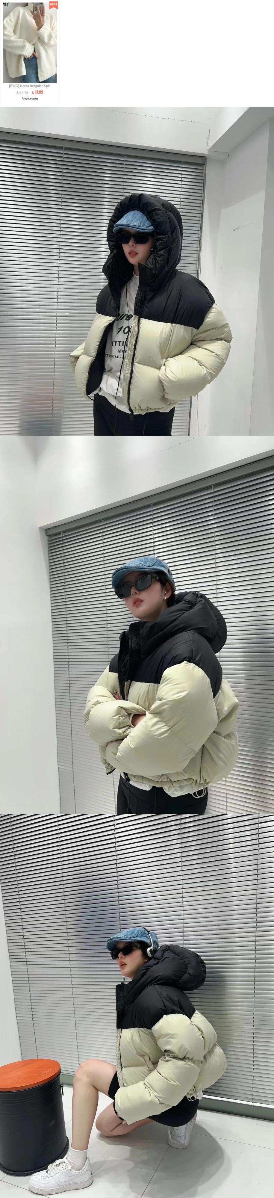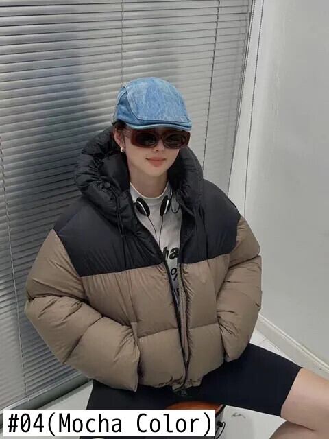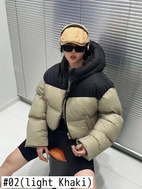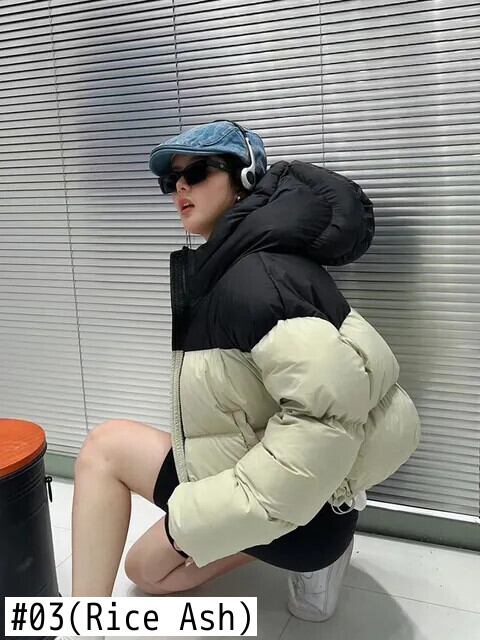 [EWQ] ダウンジャケット レディース フード付き パッチワーク カラーコントラスト ショートブレッドブレッド ダウン 中綿コート 秋冬 トップス 16U5063 コットン オータム 秋物 ウィンター 冬物