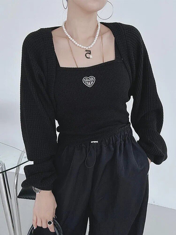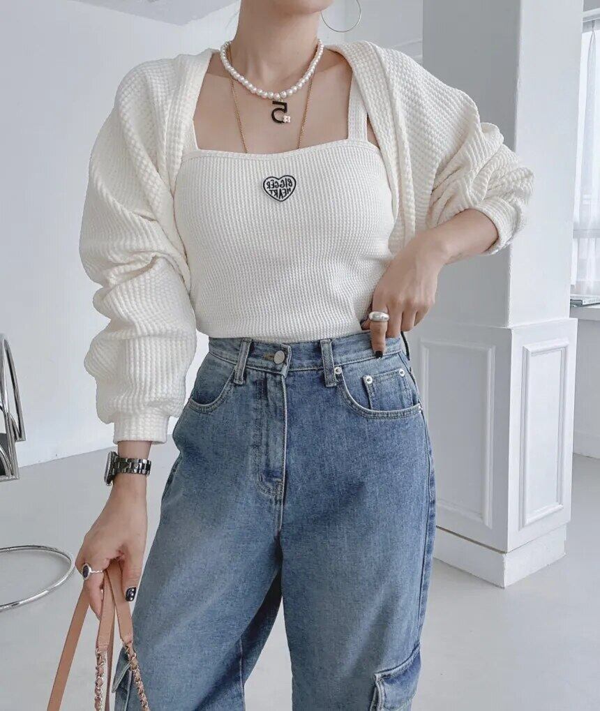 [EWQ] 長袖カーディガンコートレターパッチノースリーブセーターベスト弾性秋冬 6U5039 ロング エラスティック 伸縮 オータム 秋物 ウィンター 冬物