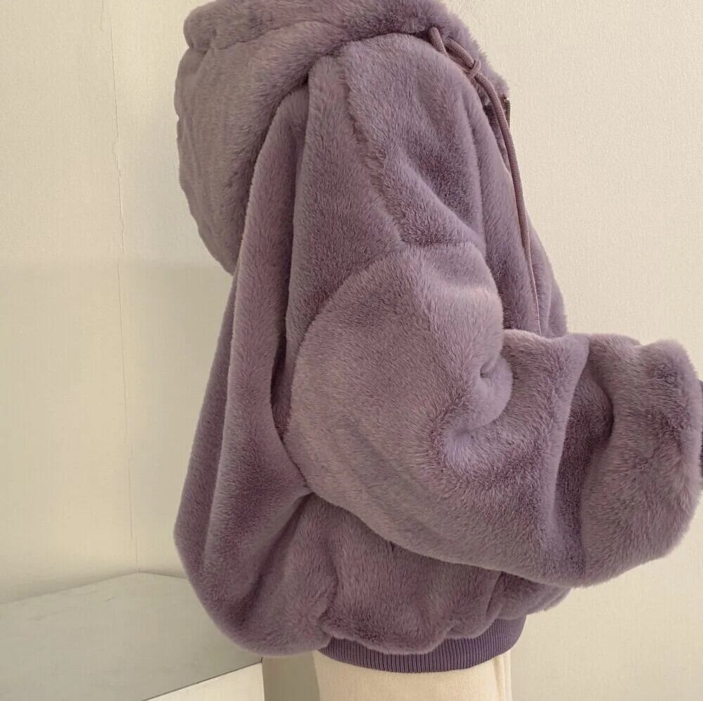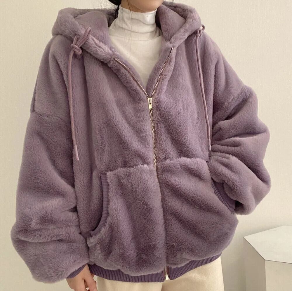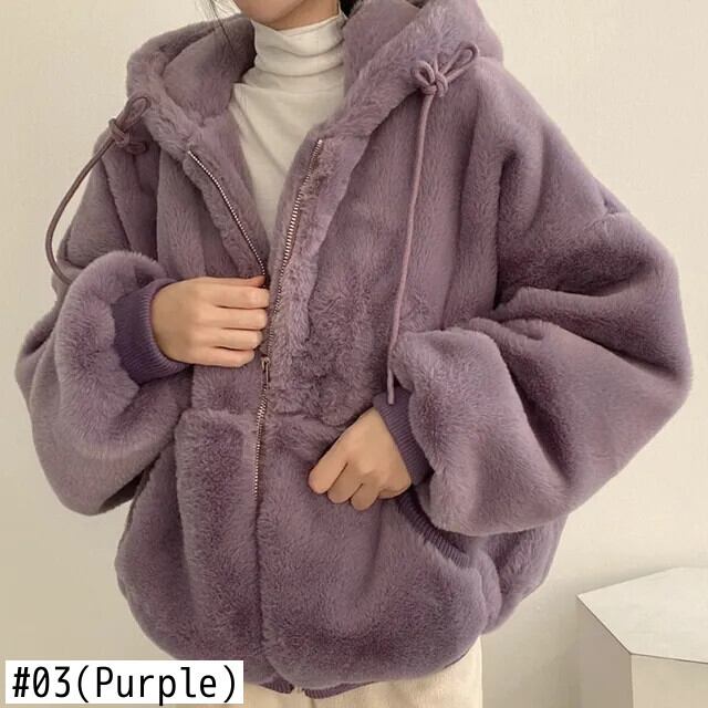 [EWQ] フード付きジッパープラスコートパープルルーズ多用途肥厚長袖アウタージャケット秋冬 16U5234 ロング オータム 秋物 ウィンター 冬物