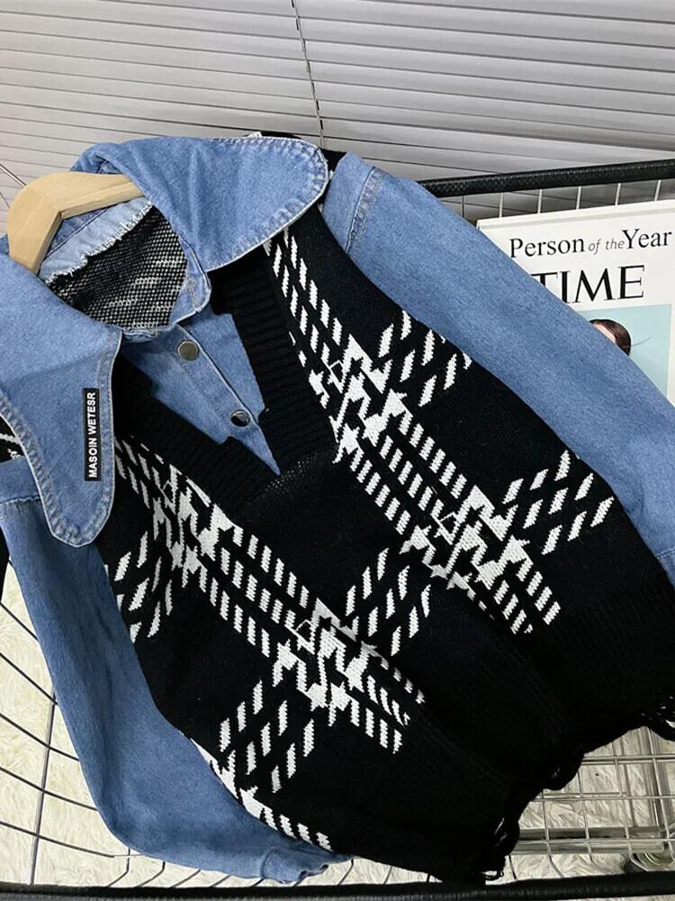 [EWQ] デニムスプライスセーター レディース 秋 ゆったり コート ニット トップス レディース 16O53301 オータム 秋物